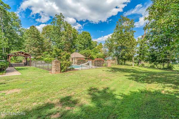 AMAZING HOME WITH NEARLY 6 ACRES OF PRIVACY!! FIRST TIME ON MARKET! Custom built home in immaculate condition with an open floor plan, master on the main, hickory hardwood floors throughout except in the baths and theatre room. Kitchen features a cathedral ceiling, archways, custom cherry cabinetry, corian counters, Samsung stainless appliances convey, new disposal, butler's pantry, desk area, island, breakfast area overlooking the pool, formal dining area with trey ceiling and columns, Samsung stainless appliances convey, owner is using electric but natural gas is available, living area is open to all the main level and upstairs, features a stackstone wood burning fireplace but owner is currently using a gas insert, living area has tinted windows on the front and back and exits to the large covered patio that you can enjoy year round. From the patio is more concrete with a recent gazebo added for more outdoor living space. Wrought iron fencing with brick columns featuring lighting, surrounds the true L shaped inground pool with a large walk in shallow area and owners added a foot deeper in the end with the slide and diving board. Pool house is finished nicely, features crown molding, fresh paint, a half bath and plenty of storage area. It also has a door opening to the rear with the pump out of sight and no noise while you enjoy the pool. The pooll has been updated with a new salt system, motor, light, a borderless liner and a new cover. Back inside the living area is completely open and great for entertaining and the host will never be secluded in the kitchen. Also on the main level you will find a large office with french doors (could be used for a nursery or a bonus room if needed) Master is on the main and also walks out to the covered patio, large master bath with dbl vanities with granite, plantation shutters, walk in closet, jacuzzi tub, a large (recently renovated) walk in tile shower.
