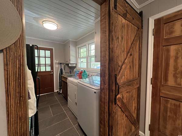 This stunning brick one-story home is nestled on 4.1 acres near Kingstree, providing a tranquil country setting. The interior has been beautifully renovated to feature three bedrooms, two bathrooms, a cedar closet, hardwood floors, granite countertops, and custom cabinets. The property also boasts a two-car garage and two storage buildings, offering the perfect blend of rural charm and modern sophistication.