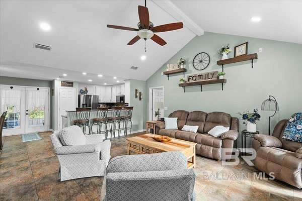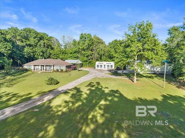 Tucked away at the end of a long private drive, this home rests on a peaceful 3-acre setting that offers privacy, quiet, and room to truly spread out. Surrounded by natural beauty and a serene landscape, the property creates a sense of retreat while still being conveniently located for everyday needs.The home features a spacious and well-designed layout, including a large master suite that provides a comfortable, private escape with plenty of room to unwind. Additional bedrooms are generously sized, offering flexibility for guests, or home office space. At the heart of the home, the updated kitchen is both functional and inviting, complete with new appliances, a double oven, and a built-in air fryer—well-suited for both daily living and entertaining. The living area is anchored by a stone wood-burning fireplace, adding warmth and character, while the screened-in back porch offers a relaxing spot to enjoy the peaceful surroundings year-round.Beyond the home, the property truly shines with a 40' x 60' shop equipped with a 16-foot roll-up door and 220-amp power—perfect for RV or boat storage, a workshop, or any hobby requiring serious space. A separate 500-square-foot guest house provides additional privacy and comfort for visitors or extended stays.With easy interstate access, this property offers a rare combination of quiet country living and convenience to Mobile and Pensacola. Spacious, functional, and thoughtfully designed, it’s a place to settle in and enjoy the best of peaceful living. Buyer to verify all information during due diligence.