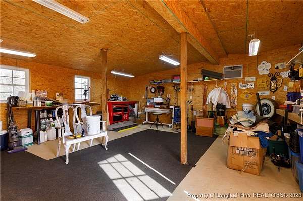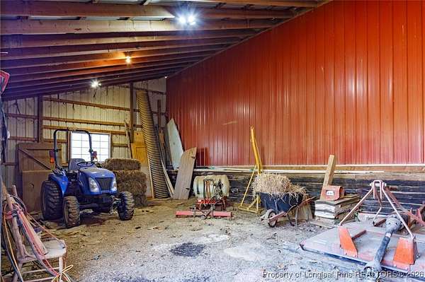 Equestrian Estate on approx. 22 Acres - Country Living with Exceptional Attributes! Enjoy peaceful country living without sacrificing convenience at this beautifully maintained property just minutes from town and major destinations. The home offers approximately 2,272 square feet of living space with a double garage, welcoming rocking-chair front porch, and expansive outdoor entertaining areas including a large patio with firepit and a second patio with pergola. Inside, the thoughtfully designed layout includes 3 bedrooms and 2.5 baths, a vaulted great room with brick fireplace, and a spacious kitchen featuring abundant cabinetry and counter space, a separate desk area, and an adjoining dining area. Additional highlights include a laundry room with shelving, a Carolina Room, and a large primary bedroom with en-suite and guest bedrooms located at the front of the home. The interior-including kitchen cabinets-has been freshly painted - gorgeous! The 22-acre partially fenced property includes three separate pastures, a pond (approximately 1 acre) and pasture/growing areas previously used for pesticide-free crops - hay, clover, and buckwheat - oodles of Sunflowers, too! Equestrian facilities feature a horse barn with 4 - 12'x12' stalls (rubber stall matting over dirt floors) and a 5th 12'x24' foaling stall (dirt floor/no mats) which could be divided into 2 stalls. The 12' center aisle, tack room (secured), and 12'x12' wash rack (w stainless steel commercial-grade sink) feature concrete flooring. The barn is serviced by a tankless propane water heater (2018). Multi-function space (gym/office/guestroom) with a loft, in barn is 12'x25'. Barn complex also features a tractor barn 20'x36' (approx.) plus an air-conditioned woodshop that was the original barn (25' x 24') w/screened & covered adjoining work area/porch. A freestanding indoor/outdoor four run dog kennel and two large chicken coops complete the outdoor amenities. Additional features include county water and Spectrum Fios availability. This is a rare opportunity to own a versatile, well-equipped turn key property - mower (2024 SKAG Cheetah 2, 61"), tractors (2006 New Holland TC34DA & 2020 Kioti RX6620-cab is heated/cooled w/KL7320 front loader w/7' bucket, heavy duty quick attach forklift, KB2485 backhoe w/18" bucket (plus 8 3-point tractor implements - see Feature Sheet with many additional tools) country property with outstanding access, ideal for horse lovers, hobby farmers, or anyone seeking space and serenity close to town. Located off the beaten path yet close to everything, the home sits less than 10 minutes (7 miles) from Lillington, 15 minutes to Erwin, Dunn, and Angier, 25-30 minutes to Fayetteville, and approximately one hour to Raleigh-Durham International Airport. Pope AFB is just 13 miles away, Fort Bragg under 16 miles, and the new Bragg Boulevard gate will be less than 10 minutes from the property. For outdoor and equestrian enthusiasts, the renowned Walthour-Moss Foundation-a fenced, 4,000-acre preserve with groomed horse trails in Southern Pines-is only 35 miles away. Nearby parks also include Anderson Creek county park 4 Miles, and Raven Rock state park (with maintained equestrian trails) just west of Lillington. Do not hesitate - this is a dream property! (Pre-market Inspection Completed)