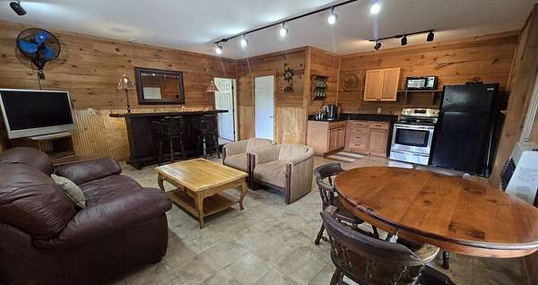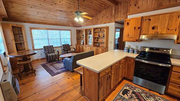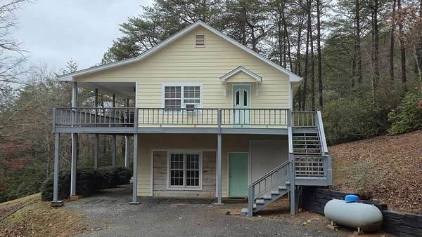 Experience the serenity of the North Georgia mountains with this 4-acre property nestled alongside beautiful Brasstown Creek! Here, you'll find both a charming cabin-style home overlooking over 350 feet of creek frontage, as well as two spacious warehouses with frontage on Highway 66 for commercial purposes or storage. Inside the home you'll find a great room with cathedral ceiling and inviting wood floors that allows you to take in the views while cooking, dining or winding down your evening. Fall asleep with an open window or door and the placid sounds of the creek. Wake up the next morning in the master bedroom and saunter onto the covered porch with stunning year-round views of Brasstown Creek, nearby pastures and the majestic mountains. Relax by the creek in the afternoon and enjoy fishing, tubing, swimming and other outdoor activities in this tranquil getaway. The warehouses included with this property are large and offer plenty of potential for workshop and storage uses, as well as an additional living unit in one of them with heated office and bathroom space. This property could be an ideal investment property, as there are two residential and two commercial units able to be rented out. Come and see what this unique property has to offer you!