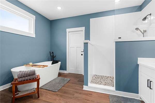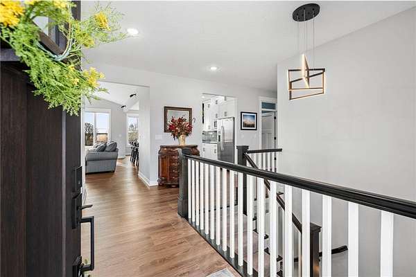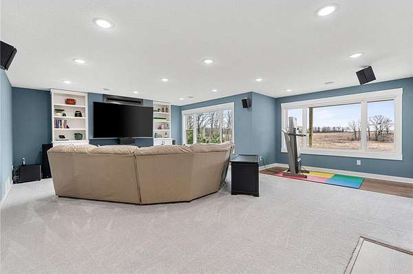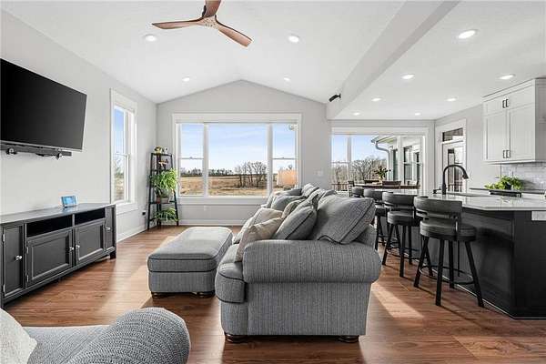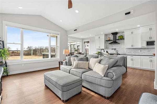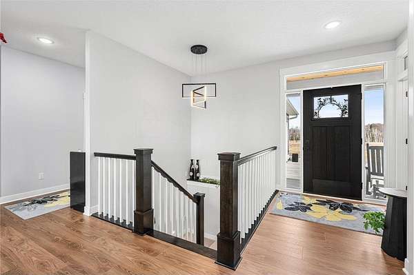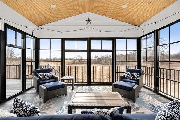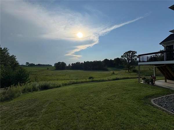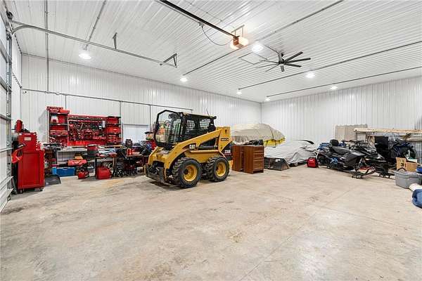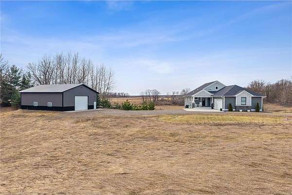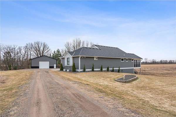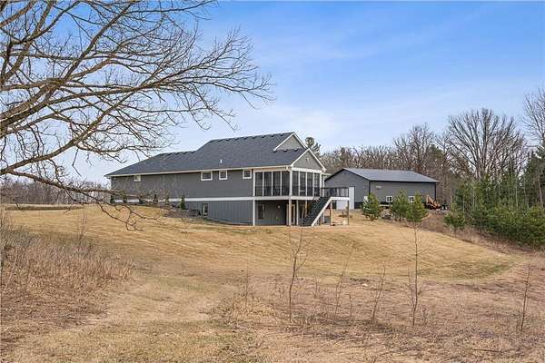 Welcome to your ideal sanctuary! This exceptional custom-built home is nestled on 20 stunning acres, showcasing gentle rolling hills, vibrant hardwoods, tranquil ponds, apple trees, and a rich variety of wildlife, complimented by mowed walking trails. Completed in 2021, this home features thoughtful design with attention to detail, low maintenance, energy efficiency, all while prioritizing main-level living. Upon entering, you are welcomed by breathtaking panoramic views from both levels, with west and south facing windows that bathe the vaulted living room, open concept kitchen, dining area in natural light. Adjacent to the kitchen and primary bedroom, the incredible three-season screened porch is equipped with an EZ Breeze/EZ Screen window system, serving as the ultimate peaceful retreat. This main-level layout seamlessly connects the primary suite to a full ensuite, walk-through closet, laundry room and mudroom. Notable upgrades include an automatic in-ground irrigation sprinkler system, Pella windows, solid craftsman-style paneled doors, transom windows, french doors, quartz countertops, sleek stainless-steel appliances, a kitchen pantry, and walk-in closets in every bedroom, complimented by LED recessed can lights throughout this home and so much more. This space overflows into the bright, comfortable lower-level walk-out featuring a spacious family room with a gas fireplace, a wet bar, two additional bedrooms, a bathroom, and ample storage. Making this a versatile area for additional living in a split bedroom layout or providing a tranquil get away for guests. Step onto the patio, composite deck, or screened porch, all providing the perfect locations for stunning sunsets and wildlife viewing all year long. The oversized two car garage is a dream, being insulated, heated and cooled, while the impressive 48’X40’ pole building is perfect for a workshop, hobbies, or abundant storage. Complete with a concrete floor, fully insulated, equipped with electrical, heat and cooling, with water access. Seize this rare opportunity to own this meticulously crafted and cared for property and imagine your future in this picturesque setting!