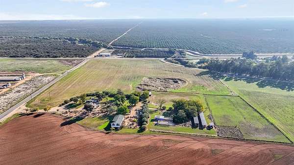 The perfect location to live has arrived! This exceptional corner lot offers approximately 19.28 acres (839,836 sq. ft.) of level land a perfect blend of space, peace, and potential! A charming two-bedroom, two-bath mobile home sits on a small hill, offering a serene living space with newer central heating and cooling, an updated roof, and a sturdy storage sheds near by. The home is in top, move-in-ready condition and features a fully equipped kitchen, spacious living room, and a large dining area filled with natural lighting throughout. Previously zoned for a dog kennel service, the property also includes chicken coops and plenty of room for agriculture, animals, or outdoor projects. Surrounded by beautiful scenery, mature landscaping, and open skies, this property is ideal for anyone seeking a country lifestyle with the convenience of being near highways, stores, and shopping areas. Don't miss out on this one-of-a-kind opportunity it's a must-see!