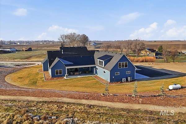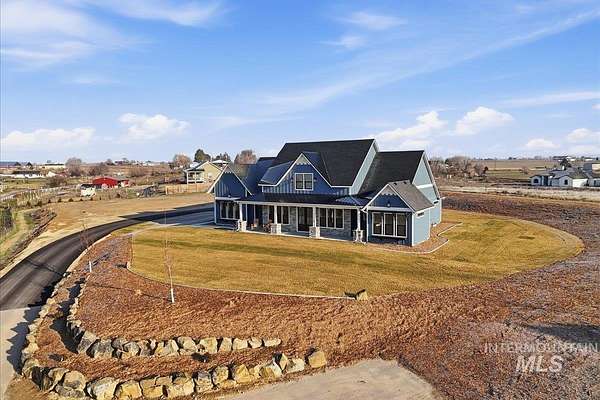 Rare 1.5 acre luxury home at the end of a private road with NO HOA and multigenerational potential with approval for a second home or shop! This custom home is catered to privacy and space for everyone with a split floor-plan separating the 4 bedrooms, 3.5 baths & office on the main floor while upstairs you'll find an oversized bonus room w/ an additional full bath over the extended 3-car garage. The highlight of this home is the ultimate hosting kitchen that features a 10ft island, a massive private prep area with built-in fridge/freezer combo, Bosch appliances, custom cabinets, and two sinks with hands free motion sensors! Both the laundry room and mudroom area come equipped with extensive storage. Central Vacuum plumbed throughout and a RO filter included! Step outside to enjoy mountain views from your covered back patio all year long outfitted with a stone fireplace, tongue n' groove ceiling and EAST facing backyard. Get the best of both worlds and watch the sunset off of your covered front porch. Property amenities include private well & septic, a boulder terraced front yard, garden space, and room for any animals including horses! In your new neighborhood Haven Ridge, enjoy a community sports court, picnic area, and a 1-mile walking trail surrounding the neighborhood. Located in the Middleton school district and 25 minutes away from two Costcos!