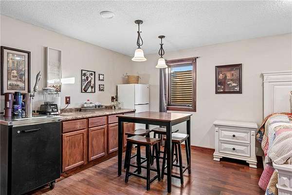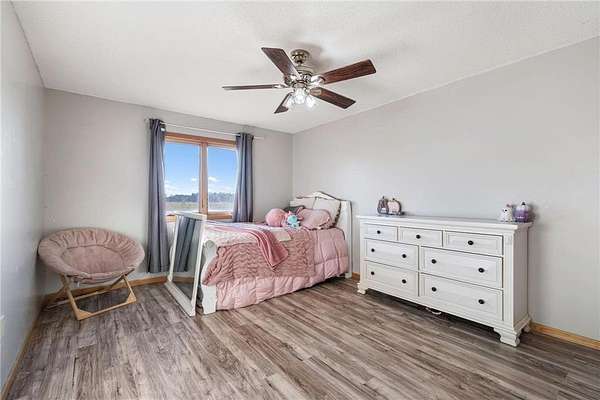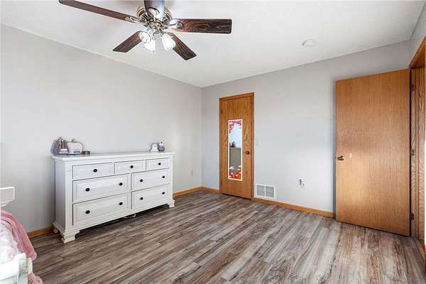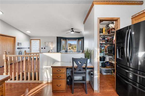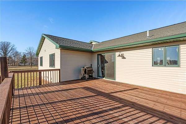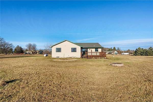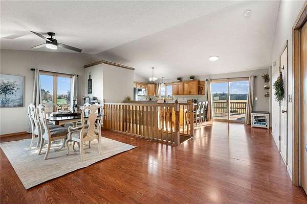 This comfortable country home offers the perfect blend of comfort and tranquility, nestled in a peaceful neighborhood. The expansive, level backyard faces south, offering views of the surrounding fields and wooded areas, making it an ideal spot for gardening, playing outdoor games, or simply soaking in the beauty of nature. A generous sized deck, recently stained and accessible from the kitchen and dining areas, provides a welcoming space for grilling and entertaining guests. Inside, the home features open concept living with soaring vaulted ceilings and a bay window that fills the space with natural light. The kitchen is equipped with a convenient pantry, while the laundry room is conveniently located near the main floor bedrooms, complemented by several walk-in closets for ample storage. Recent enhancements include sleek black stainless steel appliances and new luxury vinyl plank flooring in the bedrooms. The lower level boasts a spacious primary bedroom, complete with a finished half bath and shower rough-in, along with a closet area that awaits your personal touch. Additionally, there is a non-conforming bedroom where an egress window could easily be added making this a legal four bedroom home. With abundant storage options and a large, finished, insulated three-stall garage, there is plenty of room for a workshop and recreational equipment. Embrace the joys of country living while enjoying the friendly atmosphere of this wonderful neighborhood. Quick close possible!