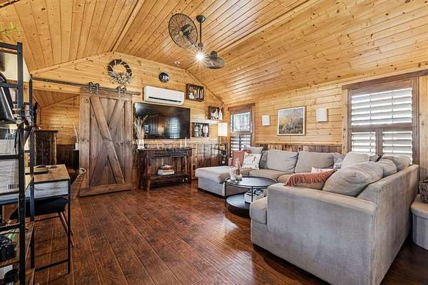 In addition to the main residence, the estate includes a charming 1-bedroom, 1-bath Ulrich log cabin ideal for guests, a 30' x 130' multipurpose shop, and a barn suitable for livestock or agricultural use.
