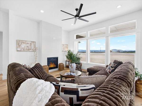 Offering 4.99% interest rate. Experience luxury country living at its finest in this exceptional new construction home situated on 2.10 private acres in Parma, Idaho. Offering 2,811 sq. ft., this thoughtfully designed residence features 4 spacious bdrms, 2.5 bths & a versatile upstairs bonus room that easily functions as a 5th bdrm, providing flexible living options to suit your needs. The main living area makes a breathtaking first impression w/soaring vaulted ceilings, a stunning floor-to-ceiling fireplace & an impressive wall of picture windows that flood the home w/natural light while showcasing panoramic views. The primary suite also enjoys expansive windows, creating a peaceful retreat w/incredible scenery. At the heart of the home, the chef's kitchen is designed to impress w/SS appliances, a double oven, beautiful quartz countertops & a generous walk-in pantry-perfect for entertaining & everyday living. Step outside to the expansive covered patio, ideal for hosting gatherings, relaxing evenings & taking in dramatic Idaho sunsets. The oversized garage includes an RV bay, plus an additional pad for extra RV parking. There is plenty of room for horses, a future shop, recreational vehicles, or even the addition of an ADU-offering excellent potential for multi-generational living. Fully fenced. Located close to the Snake River.