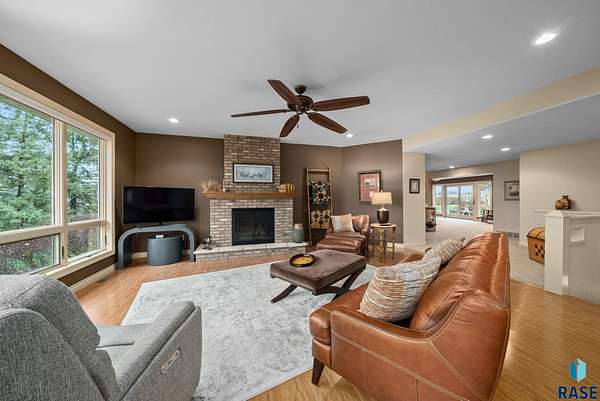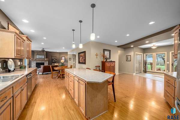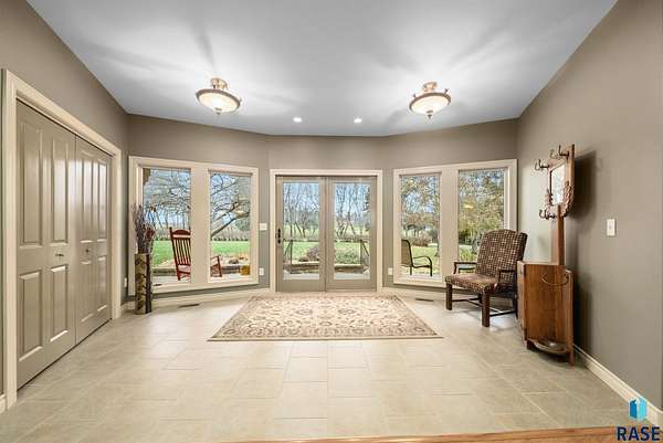 POTENTIAL 5 BEDROOMS!! Exceptional acreage living just minutes from Sioux Falls in a beautifully cared-for ranch nestled on 2 serene acres. Step inside to a grand foyer that leads into a spacious kitchen featuring a center island, gas range, stainless steel appliances, and an impressive walk-in pantry. The open-concept design flows effortlessly into the dining area with access to the maintenance-free back deck-perfect for taking in peaceful views. The expansive family room is filled with natural light and showcases a cozy gas fireplace. The generous primary suite offers true retreat-style living with dual walk-in closets and a luxurious primary bath complete with double sinks and heated floors. Main-floor laundry adds everyday convenience. A second main-level family room provides flexibility for a formal dining space, additional living area, or even conversion into another bedroom. Two more spacious bedrooms and a full bath complete the main level. The lower level offers incredible flex space, including an exercise room, an office/non-legal bedroom, and an additional family/hobby room with a fireplace and walkout access to the scenic backyard. Car enthusiasts and hobbyists will love the four garage stalls, along with an additional outbuilding with water and electric-ideal for a hobby farm, workshop, or even horses. With a well for an extra water source and multiple school options, this acreage is the perfect blend of comfort, function, and country tranquility, all within close reach of the city.