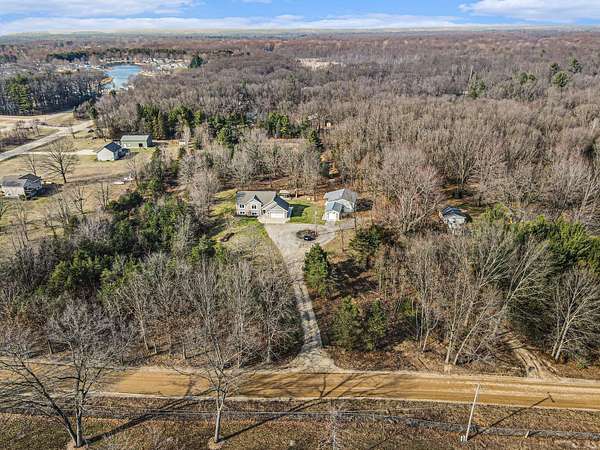 Escape to your own private retreat with this spacious 4-bedroom, 3-bathroom home set on 5.23 beautiful acres. The home offers plenty of space for comfortable living, while the expansive acreage gives you room to roam, relax, and enjoy the outdoors. A standout feature is the impressive 1,344-square-foot insulated pole barn, featuring a 16x24 front section and a 30x32 back section, plus concrete floors, electric, water, and a mini-split system for heating and AC. Whether you need space for boats, recreational equipment, a workshop, or extra storage, this barn adds incredible versatility to the property. Step outside and unwind around the firepit, taking in the peaceful setting and open space that make this property truly special. Whether you are looking for a year-round home, weekend getaway, or a property with room to grow, this one delivers the space, setting, and lifestyle you have been searching for.