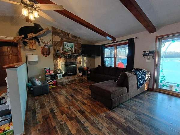 Beautiful Cedar Ranch on quiet country setting of 1.83 ac. 3 BR, 2 Full Baths, Full Walkout Basement, Covered rocking chair front porch. NEW Floors & Fresh Paint throughout NEW light fixtures & ceiling fans Vaulted ceilings with wide wood beams Open design with Stone Fireplace Custom Oak kitchen cabinets & additional oak cabinets line the entire wall in laundry room Kitchen island has granite top & black tile countertops/backsplash with new stove & exhaust/light fall 2024 NEW GCFIs outlet NEW ROOF on HOUSE & GARAGE Nov 2024 NEW BOSCH HVAC 3Ton 16 seer heat pump inverter/Remi Halo air purifier Jan 2024 FENCE 2024 NEW Water Heater 2025 Water Treatment system Oak vanities & Tile in Baths New shower heads 2025 Block Retaining Wall summer 2025 NEW GRAVEL! Storage shed, garden & DETACHED GARAGE