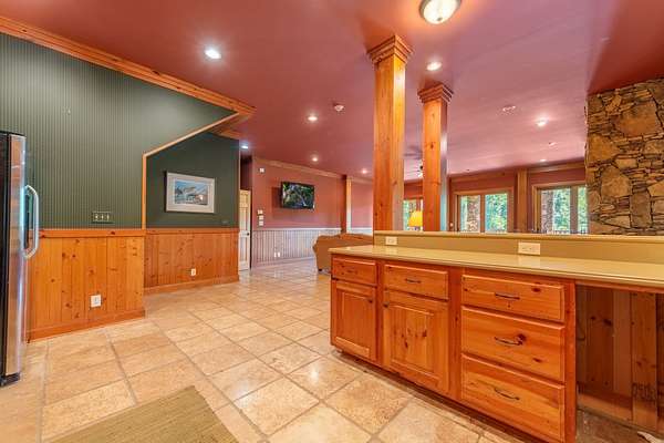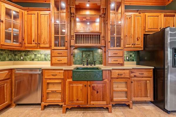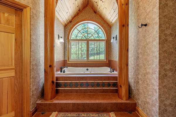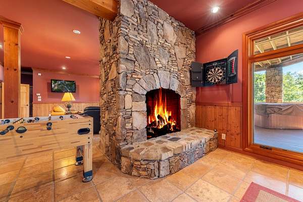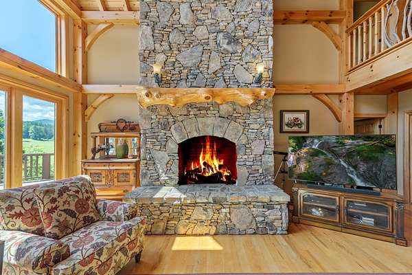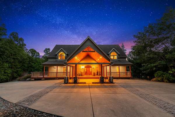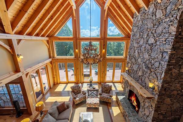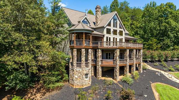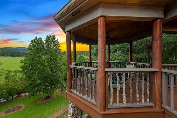 Creekside Lodge, Young Harris, Georgia - This Storybook One-of-a-Kind mountain custom timber frame luxury lodge in Young Harris, Georgia is a truly remarkable property. Nestled alongside picturesque Brasstown Creek and surrounded by oak trees, this home offers a serene and picturesque setting. The sound of the flowing water from the creek creates a soothing atmosphere, perfect for relaxation. The lodge features a vineyard and orchard, allowing you to enjoy the fruits of your labor. Spend a day fly fishing in the creek and then unwind in the hot tub or sauna. The outdoor space is extensive, with over 2,000 square feet of deck that overlooks the creek, pasture, and stunning mountain views. With 630 feet of creek frontage, Creekside Lodge offers a tranquil waterfront experience. The living space of the lodge spans an impressive 6,407 square feet, with five bedrooms and five and a half bathrooms. There are two owner's suites, one on the main level and one upstairs, both featuring custom tile double-headed showers, jetted tubs, double vanities, and custom tile floors. The lodge also includes two laundry rooms for convenience. On the main level, the great room is flooded with natural light from the soaring Pella windows and boasts 60-foot vaulted ceilings, a stack rock fireplace, and a custom antler chandelier hanging from the solid timber wood frame. Hardwood floors flow seamlessly throughout the main floor, leading to the chef's kitchen with rich granite countertops, a top-of-the-line stainless steel refrigerator, a double oven, and a pantry nook. Entertaining is a breeze with an old barn wood table that can seat 16 guests. In addition, there are four gas log fireplaces to keep you warm during the mild North Georgia winters, as well as an outdoor fireplace for cozy outdoor gatherings. The main level owner's suite features a gas log fireplace, a stunning custom tile shower with double showerheads, a jetted tub, granite counters, and a spacious walk-in closet. The upstairs owner's suite offers vaulted ceilings, a large custom tile bathroom with a double-headed shower, a double vanity, a jetted tub, and a walk-in closet with custom wood shelves. The upstairs also features a spacious loft with hardwood floors and a custom mountain laurel railing overlooking the family room below and showcasing the mountain views. Upstairs, there are two additional spacious vaulted ceiling bedrooms with walk-in closets that share a full bathroom. The lodge's terrace level includes a sizable family room with a double- sided fireplace and a gourmet kitchen that rivals many main kitchens. The family room leads to a game room equipped with a full-size pool table, foosball, a dart board, and a slot machine. There is also a full-size bathroom and a bedroom on this level. For added luxury, there is a full-size bathroom with a walk-in sauna. To complete the picture of perfection, a single-car garage with ample storage, featuring custom cabinets, provided convenience and organization. Additionally, a storage tower with a deck was thoughtfully placed on the property, offering a place to store outdoor equipment while also providing a serene spot to enjoy the breathtaking views. The lodge is equipped with modern amenities, including highly desirable Mesh WiFi that extends down to the stream. It also features an 8-camera security system with remote viewing and 30-day storage, motion detectors, smoke, fire, and carbon monoxide detectors, as well as an intruder alert system. This modern mountain retreat is a haven of natural beauty and luxury, offering a perfect blend of comfort and serenity. Whether you're enjoying the creek, taking in the mountain views, or entertaining guests in the spacious living areas, Creekside Lodge is a truly exceptional property. All (3) Three HVAC Systems have recently been replaced with new HVAC Systems.