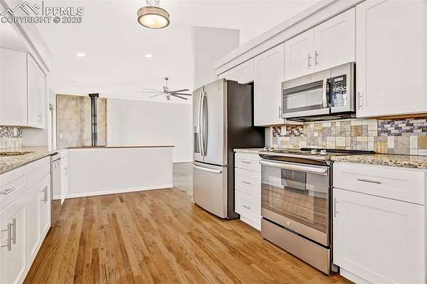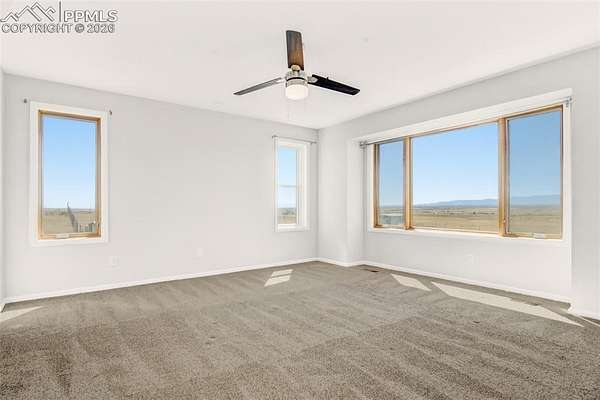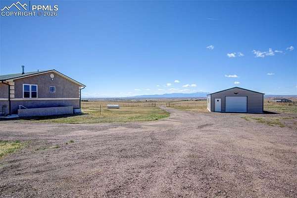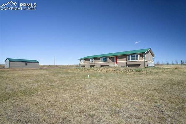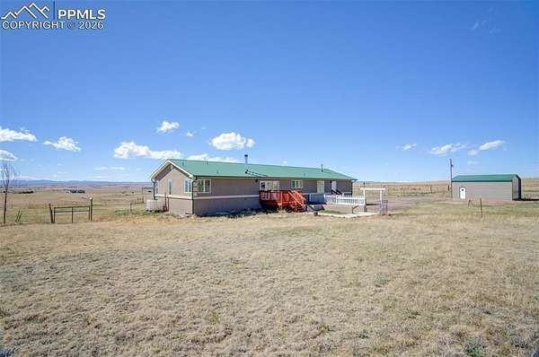 Set on nearly 40 acres of rolling hills, this private Colorado retreat offers the perfect balance of space, function, and natural beauty-complete with sweeping mountain views and a direct line of sight to Pikes Peak! The property is thoughtfully designed for both everyday living and versatility, featuring a 24' x 24' garage and an impressive 24' x 36' workshop-ideal for hobbies, storage, or running projects from home. The land itself is cross-fenced, gated, and includes a peaceful pond, creating a setting that feels both expansive and serene. Inside, the home offers warmth and character with multiple heating options, including a wood-burning stove on the main level, a traditional furnace and a pellet stove in the basement. The kitchen is finished with granite countertops, shaker-style cabinetry, matching GE appliances, and hardwood flooring, blending timeless style with everyday functionality. The basement expands your possibilities with two walkouts, a secret room tucked beneath the stairs, and pre-plumbing already in place for a future bathroom and kitchenette-perfect for multi-generational living or guest accommodations. Additional upgrades include updated hardware, light fixtures, paint, and select window replacements. A whole-house water filtration system is in place, and all appliances stay-including washer, dryer, basement refrigerator, and freezer-making this a truly turnkey opportunity. The home is equipped with a furnace and A/C system connected to a 1,000-gallon propane tank and sprinkler system for irrigation. Whether you're looking for privacy, functionality, or a peaceful escape with room to grow, this property delivers true Colorado country living-with space to breathe, room to build, and views you'll never get tired of!