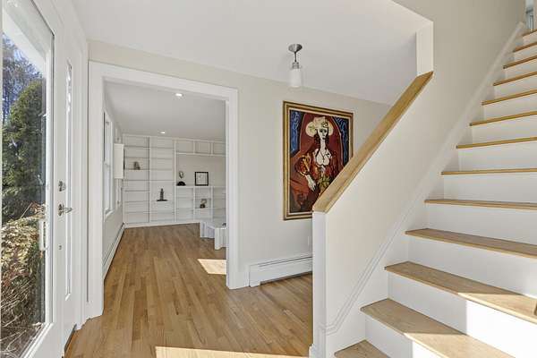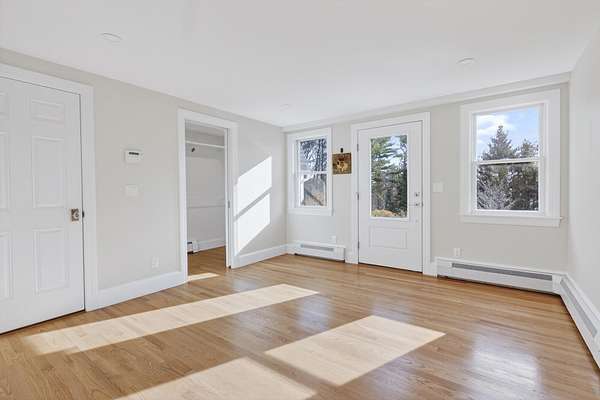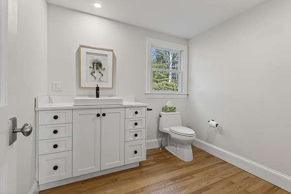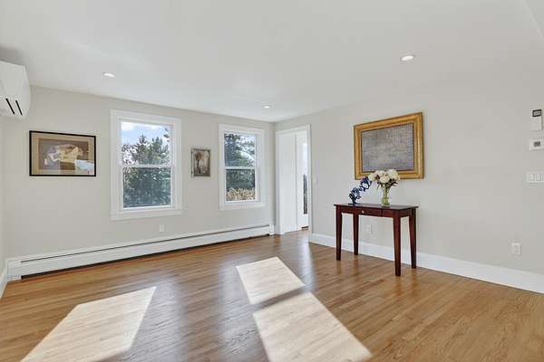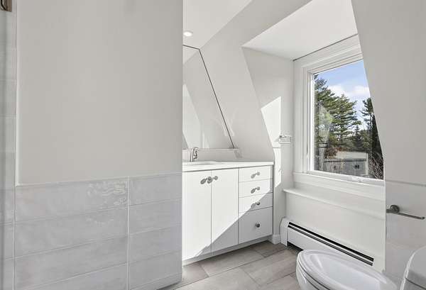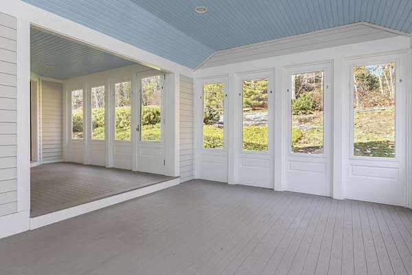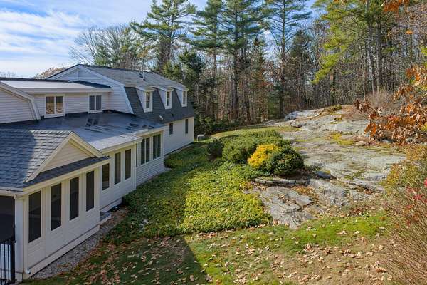 Perched atop a private, wooded hill in coveted Cumberland Foreside, this distinctive property blends refined living with exceptional flexibility. Thoughtfully renovated in 2015/2016, the main residence showcases a sun-filled first floor with a stunning great room overlooking the curated rock garden, flowing seamlessly into a spacious screened-in porch with tranquil views of the "Robin's Nest" natural swimming pool. The custom kitchen opens to an expansive dining area ideal for entertaining, while a dedicated study and a first-floor office/bedroom offer versatility for today's lifestyle. Upstairs, the primary suite feels like a retreat, featuring an inviting entry room, a dramatic sunken bedroom, a spa-inspired bath, and a generous walk-in closet. Recently refinished hardwood floors run throughout the home, complementing the high-efficiency systems, multiple heat pumps, owned solar panels, and whole-house generatoraEUR"providing comfort, sustainability, and peace of mind year-round. A two-car attached garage completes the main residence. The separate carriage house extends the property's appeal with a spacious, well-appointed apartment offering open concept living, dining, and kitchen spaces, a large bedroom, and its own two-car garage with workshopaEUR"perfect for guests, multigenerational living, or rental potential. A rare offering that combines privacy, modern amenities, and elevated style in one of Maine's most desirable coastal communities.