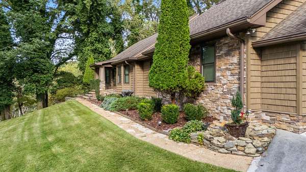 Your Retreat at the Base of Lookout Mountain Wake up to the quiet beauty of Lookout Mountain and unwind each evening with golden sunsets spilling across 4.5 scenic acres. Just ten minutes from downtown Chattanooga, this home offers the best of both worlds with serene mountain living and city convenience right at your fingertips. Steeped in rich history, this property rests in the heart of Chattanooga, offering the rare opportunity to own a true piece of Chattanooga's past. Every view, every breeze feels like part of the story this land has carried through generations. Enjoy the tranquil surroundings with Reflection Riding Arboretum and Nature Center just a half mile down the road. Step inside and feel immediately at home. The main level features a spacious primary suite, a cozy den anchored by a gas-log fireplace, and a private study lined with built-in bookshelves, the perfect spot to read, reflect, or work from home. The kitchen is the heart of daily life here, designed for gathering and entertaining. With granite countertops, built-in appliances, a double Bosch wall oven, elevated Bosch dishwasher, and a prep sink, it's as functional as it is beautiful. A stunning built-in wine refrigerator adds a touch of luxury, while the true butler's pantry complete with a Sub-Zero commercial refrigerator and freezer keeps everything organized and within reach. And then there's the sunroom, the showpiece of the home. Wall-to-wall glass sliders bring the outdoors in, creating a seamless connection to the lush property beyond. Whether you're sipping coffee on a crisp morning or hosting friends for summer evenings under the stars, this space truly captures the heart and soul of this beautiful property. Upstairs, two spacious bedrooms and a full bath offer a comfortable retreat for family or guests. With both a two-car garage and a two-car carport, there's plenty of room for visitors. This home has been meticulously maintained and cared for and ready for its new owner to make their own. This is more than a home, it's a peaceful escape, a gathering place, and a living piece of Chattanooga history.