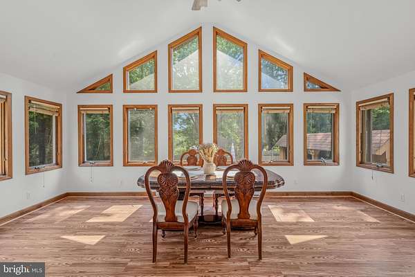 NEW Price, NEW roof, NEW septic tank! Tucked away on 1.68 private, wooded acres in the peaceful Potomac Heights community, this custom-built contemporary-style home offers a great mix of space, comfort, and style. Natural light and wood accents fill the home, creating a warm and welcoming vibe throughout. With 2,716 square feet of finished living space, there's plenty of room to spread out. The updated kitchen features oak cabinets, tile backsplash, stainless steel appliances, new quartz countertops, a breakfast bar, a self-cleaning electric oven, built-in microwave, a pantry with pullout drawers, and a dishwasher to make everyday life easier. Bring the picnic table and patio furniture because off the kitchen is a huge fully screened sunroom. The living room is large and steps down through glass pocket doors to a generous sized dining room with a vaulted ceiling. The second floor is where you'll find the primary bedroom with an exterior balcony, a full bath, and a loft area making it a perfect owner's suite. There's also a main level bedroom and an additional room that could make the third bedroom or home office. The main level bathroom accommodates the laundry, and the washer & dryer convey. Downstairs, the fully finished basement creates yet another flexible living area. The basement-level 2-car garage backs to a utility room with an abundance of space for storage or a potential workshop. There's also a detached two car garage for the car enthusiast which also has a huge loft. The fenced backyard provides a fire pit, a deck, and a covered seating area to enjoy grilling, breezy summer evenings, and it would be a great space for a hot tub! There's a shed/chicken coop on the property too! There is a lot to see and love here. River access is private to the community and can be located at the locked gate on Lockhouse Rd. Minutes to I-81 and shopping. Schedule your showing today!