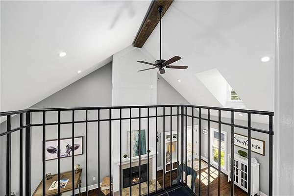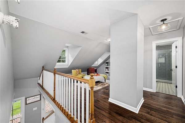 The main-level primary suite is filled with natural light and offers two closets, luxurious bathroom with dual vanities separated by a linen tower and a seamless glass shower. A powder room completes the main level. Upstairs, three bedrooms share a renovated bathroom, and enjoy access to a central loft-style common area perfect for an office or guest/upper level living or play space.