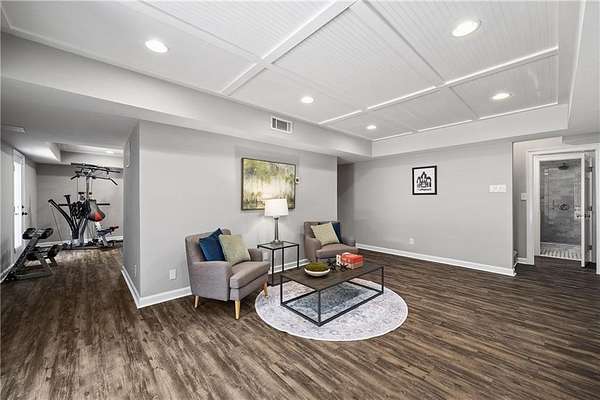 The terrace level extends the living space with a recreation room that opens through French doors to the pool as well as back room currently used as gym. This level also includes a large bedroom and a beautifully appointed full bathroom finished with marble tile and a seamless glass shower that opens to screened lower patio.