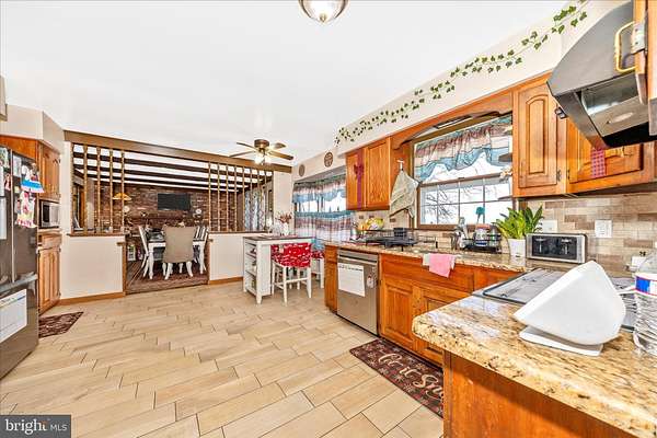 Set against sweeping pastoral views of Montgomery County's agricultural reserve, this brick rancher offers privacy, space, and peaceful surroundings framed by mature maple trees and established landscaping. Inside, the main level features hardwood floors in the living and dining rooms, a spacious kitchen, and a welcoming living area with a wood-burning fireplace and sliding doors leading to a large concrete patio ideal for entertaining. The home includes three main-level bedrooms, including a primary suite with a walk-in closet and private bath, plus a second full bathroom. The finished lower level offers a large recreation room with a second fireplace, a full bathroom, and two separate den spaces with closets. A side-load 1.5-car garage with an automatic opener and parking for 10+ vehicles adds exceptional convenience for everyday living and entertaining. Make this exceptional property yours before it's gone.