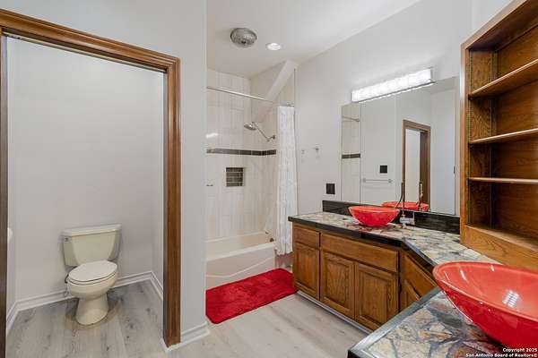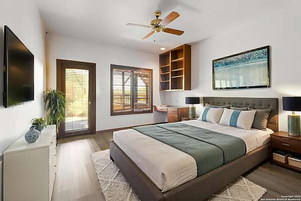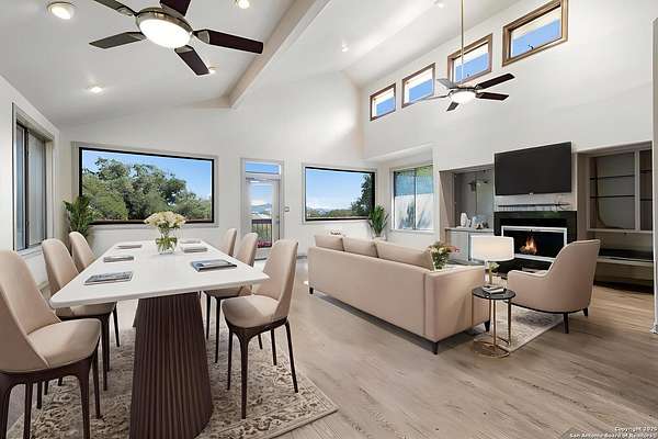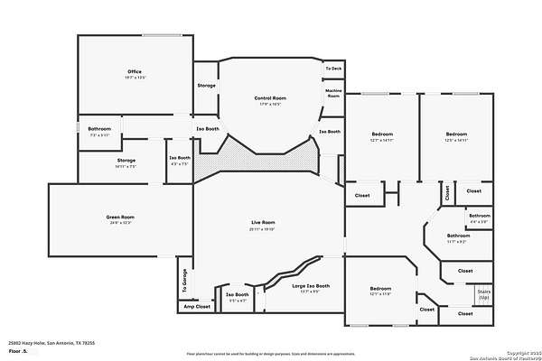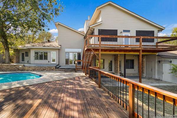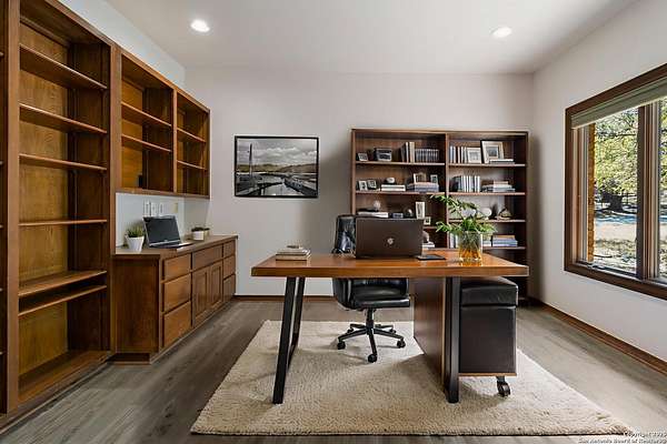 Step inside one of San Antonio's most distinctive properties - a musician's dream and private retreat all in one. Originally featured in Mix Magazine's Class of 2002, this acoustically engineered recording studio was designed by renowned acoustician Jack Piercy with audio installation by RB Blackstone of Sound Madness. Built to exacting professional standards, the 2,270 sq ft facility includes a 500 sq ft Live End Dead End (LEDE) live room, 290 sq ft control room with a vintage Neve console, 2" tape recording, and a Pro Tools Ultimate HDX setup (32 channels in and 32 channels out). Five isolation booths, a green room lounge, dedicated office, half bath, and ample storage make this a fully turnkey studio - ready for tracking, mixing, and mastering. Expert soundproofing and studio-grade construction greatly reduce sound transfer, allowing both creative flow and household peace to coexist. Beyond a discreet private entrance lies the 3,576 sq ft custom residence - seamlessly connected yet completely separate in feel. The home offers four spacious bedrooms, two and a half baths, and a private office overlooking 1.77 wooded acres in a gated, guarded community. Inside, the formal living room makes a bold statement with its floor-to-ceiling brick fireplace and double sliding glass doors leading to the main deck and sparkling pool. Upstairs, the modern kitchen glows beneath a central skylight and opens to an expansive family room with an elevated deck showcasing breathtaking hill country views - perfect for quiet mornings or late-night jam sessions under Texas skies. The primary suite and office are tucked away for peace and privacy, striking a perfect balance between creativity and comfort. This property isn't just a home - it's a creative compound and a one-of-a-kind opportunity to live, work, and create without compromise.