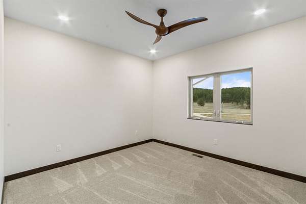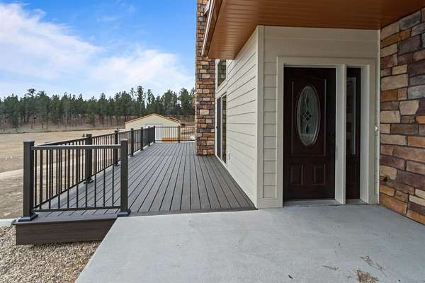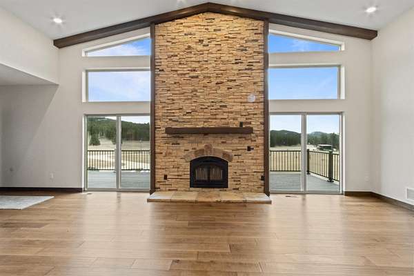 Listed by Jon & Jenni Brue, Keller Williams Realty, 605.381.1055. Move in Ready New Construction! Why wait months for a new build when your dream home is ready today? Welcome to Luxury at your 5 acre retreat. This 4500+ square foot home is a must see! The great room welcomes you with 15' ceilings as you enter this true Zero Entry level home. This great room boasts a ledge rock wood burning fireplace, spacious 25x22' living room with patio sliders to the front maintenance free deck. The kitchen has leathered Quartzite counters with a waterfall edge on the island. Gas or electricity is available for a 36" range. Dual full sized sinks and under cabinet lighting enhance the kitchen. The pantry has built in cabinetry along with designated space for an additional refrigerator/freezer and wine cooler. The spacious primary bedroom has it's own constellation deck for viewing the stars. The Wet Room offers a walk in shower and soaking tub along with dual sinks. Doing laundry is a breeze since the primary suite has it's own laundry room off the walk in closet. Two additional bedrooms and bath accompany this level. Downstairs offers a home in itself, perfect for a multigenerational family! It includes a family room, full kitchen, gas fireplace, walkout patio, game room, office, laundry and two additional bedrooms; a primary ensuite is with a walkout to the patio is one of the two. See documents for additional features. Seller is a licensed real estate agent in the state of SD.