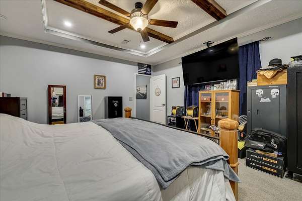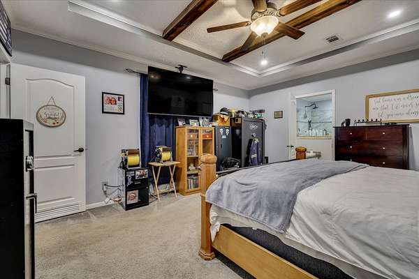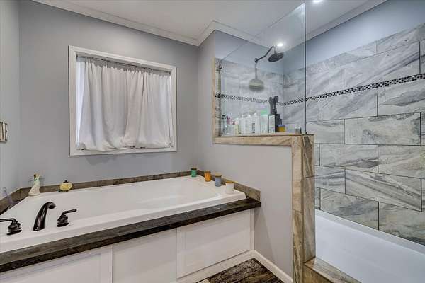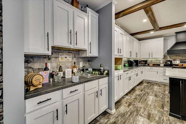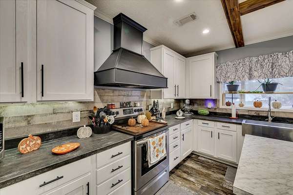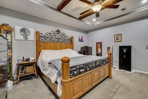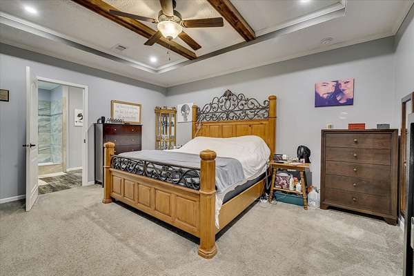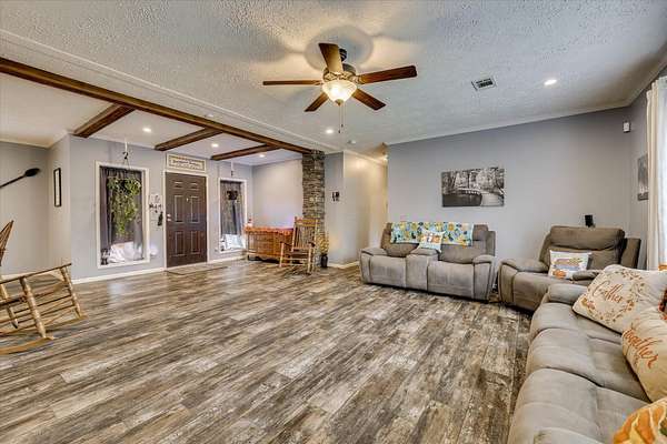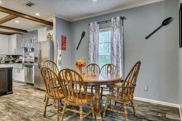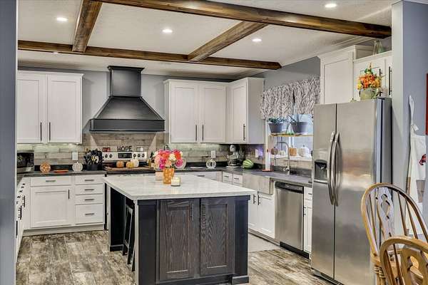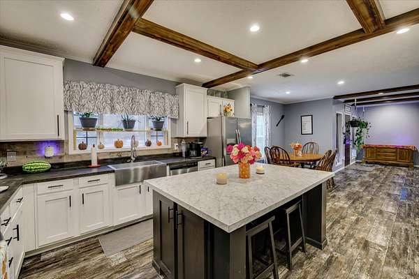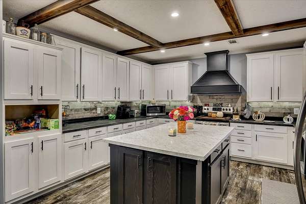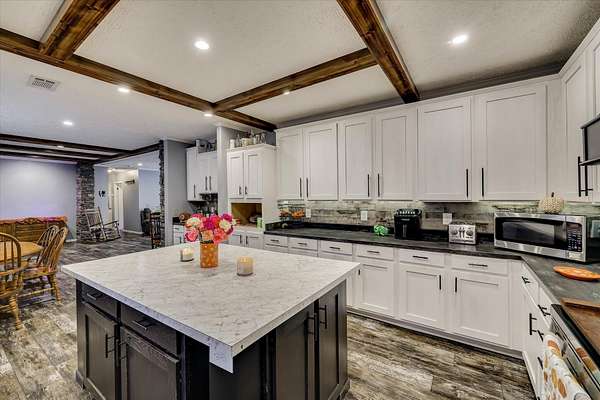 Welcome to your very own private oasis! This stunning 4-bedroom, 3-bathroom home is nestled on 16.77 completely private acres, offering the perfect blend of comfort, nature, and modern living! The property is truly special-bursting with blueberries, blackberries, huckleberries, persimmons, apples, pears, plums, and cherries, and surrounded by peaceful wildlife including deer. With an excellent yield and a large garden space, this is a dream come true for anyone who loves the outdoors, gardening, or homesteading! Step inside and fall in love with the open layout, designed for both everyday living and entertaining! The spacious kitchen is the heart of the home, featuring a massive island, abundant counter and cabinet space, and a layout that invites gathering and conversation! The cozy living room offers a wood-burning fireplace, built-in shelving, and beautiful natural light, creating a warm and inviting space to relax or spend time with loved ones! The split-bedroom floor plan provides privacy, with the owner's suite tucked away as a true retreat! Enjoy tray ceilings with beautiful wooden beams, and a fabulous ensuite complete with a large walk-in tiled shower, soaking tub, dual sinks, and a massive walk-in closet with built-ins and a center island-a true showstopper! Three additional bedrooms each feature large walk-in closets and ceiling fans, with two well-appointed full bathrooms nearby! The laundry room is both functional and stylish, offering plenty of cabinets, counter space, and a convenient utility sink! Outside, the opportunities are endless-relax, explore, garden, or simply soak in the serenity of your surroundings! Whether you dream of farm-to-table living, a private family retreat, or simply space to breathe, this property offers it all!