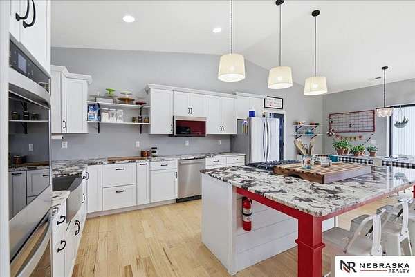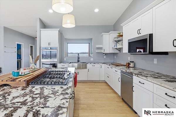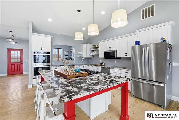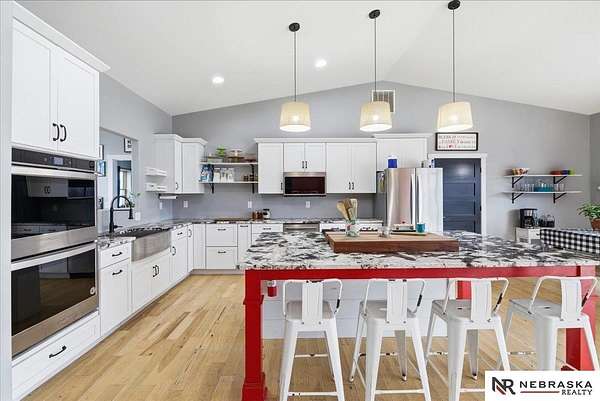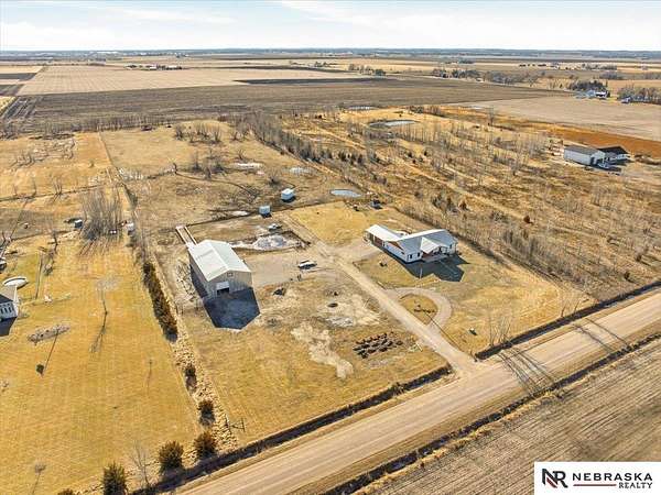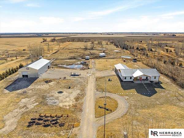 Carey Wilcox, M: 402-212-2271, carey@nebraskarealty.com, https://www.nebraskarealty.com - Acreage Alert!!! Rare opportunity to own a newer home on nearly 10 acres! Built in 2019, this 3-bedroom, 2.5-bath offers an open floor plan with tall ceilings, a double oven, flex room, and a 3-car garage. House built with ICF construction providing durability and energy efficiency. The property is well-suited for horses, chickens, cattle, and other livestock, and includes an impressive 3,200 sq ft outbuilding built in 2020 that has a framed interior room with rough-in for a bathroom. Enjoy privacy, room to grow, and the added benefit of a low tax levy of just 1.317.