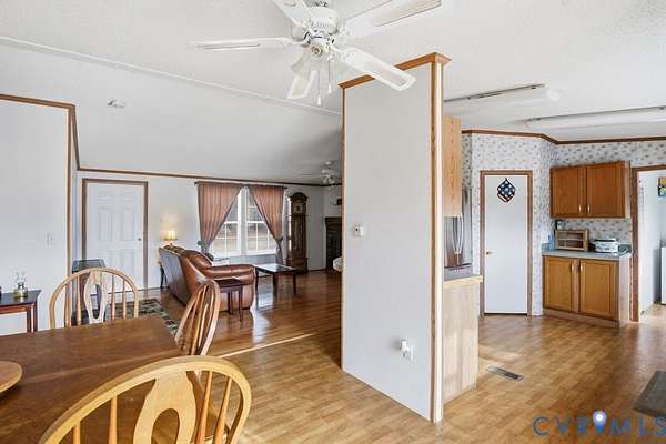 - Bath In Primary Bedroom, Bedroom On Main Level, Ceiling Fans, Dining Area, Double Vanity, Fireplace, Laminate Counters, Main Level Primary, Pantry, Walk In Closets