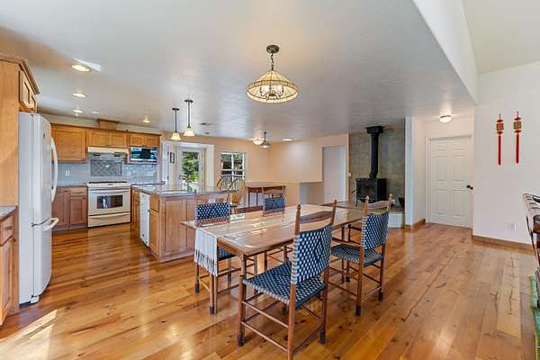 Discover the perfect blend of privacy, space, and self-sufficiency on this exceptional 12-acre irrigated estate, fully fenced and gated, and backing directly to BLM land. Enjoy sweeping panoramic views and unmatched seclusion, with surrounding trees and brush on both the property and adjacent BLM land professionally treated for enhanced fire resistance. The 3,192 SQFT home, originally built in 1974 and thoughtfully remodeled, offers a spacious open floorplan with a large kitchen, three generous bedrooms, and 2.5 bathrooms. Two separate living areas provide flexibility for entertaining, guests, or multi-generational living. Outbuildings abound, including a large shop, barn, poultry coop, shed, and dedicated workshop--perfect for hobbies, storage, or working the land. Additional highlights include solar panels, high-speed fiber optic internet, a tranquil pond, and expansive flat, usable acreage. This is a rare opportunity to own a secure private retreat with endless possibilities.