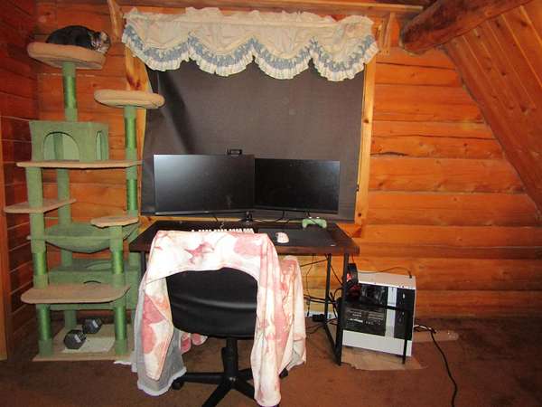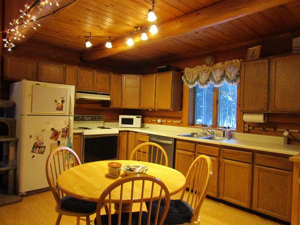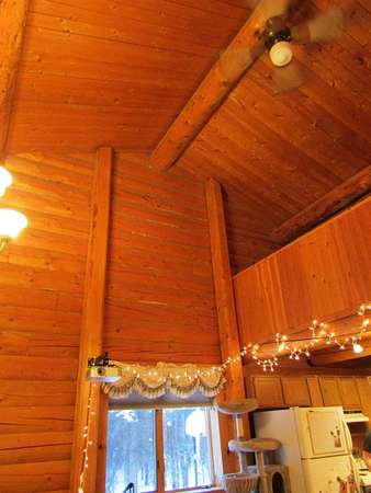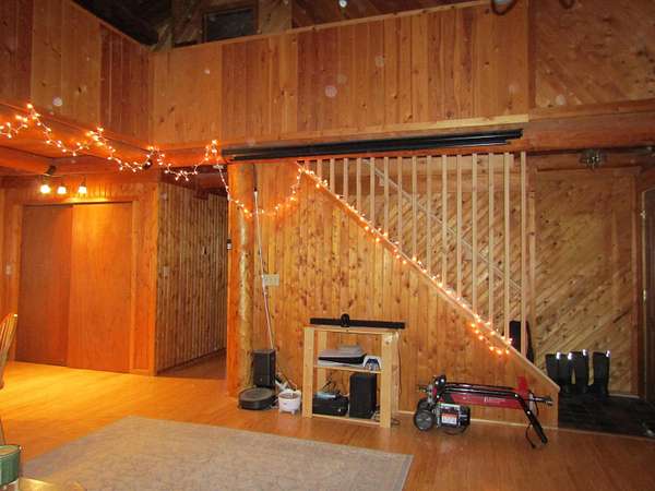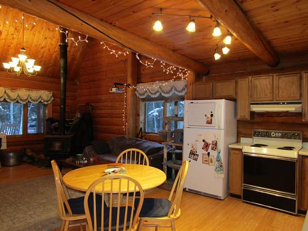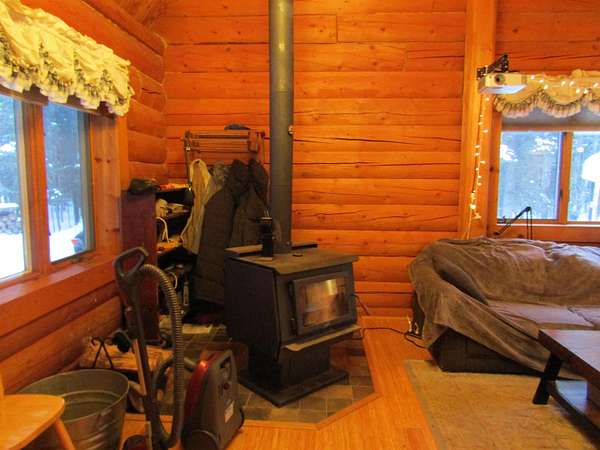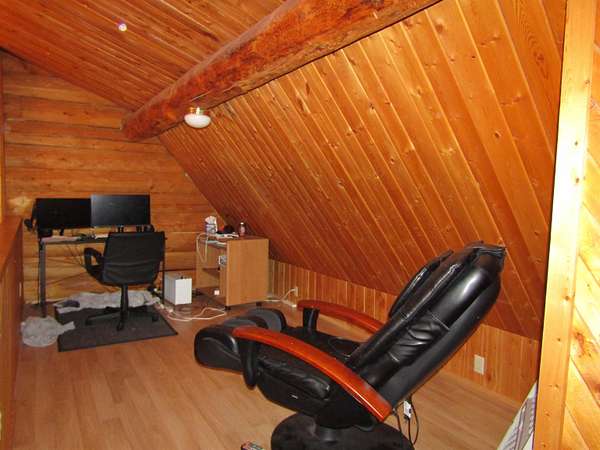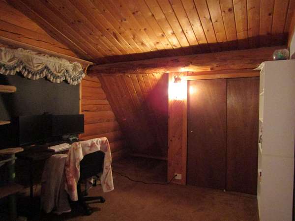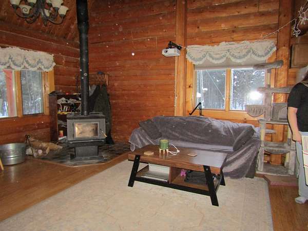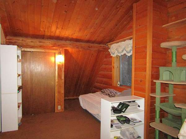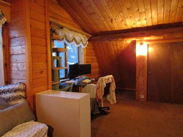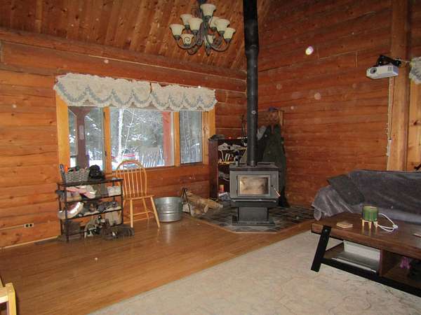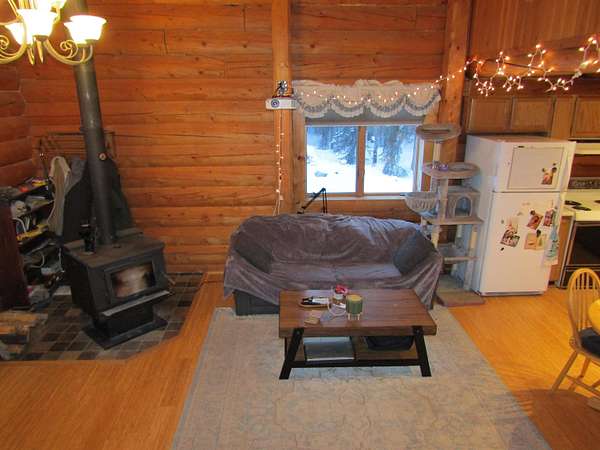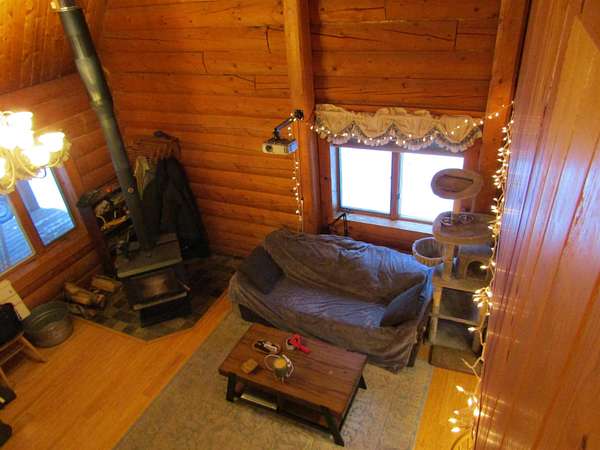 This charming log home features a fully covered front porch--an ideal spot to enjoy sunny summer afternoons. Out back, the deck overlooks a spacious backyard and greenhouse, offering both privacy and versatility. Inside, the living area boasts a vaulted ceiling and an open layout that flows seamlessly into the dining area and kitchen. The main floor includes a bedroom and full bathroom, while the upper level offers a second bedroom and a generously sized open area perfect for a home office, extra sleeping space, or whatever suits your needs. The full, open basement includes a half bath and is ready to be easily finished. A forced-air furnace provides ample heat, or can serve as backup if you prefer heating with the Blaze King wood stove--adding both efficiency and the cozy ambiance everyone loves.