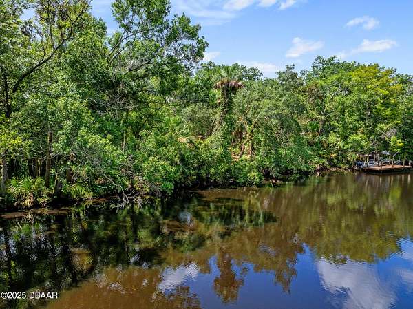Tucked inside one of Florida's most distinctive GATED communities, this RARE waterfront lot in Spruce Creek Fly-In is your blank canvas for a custom DREAM home! Spanning just under half an acre (approx. 100x203x143x205), this property sits directly on deep water and is eligible for a 140 sqft DOCK-ideal for boating, relaxing by the water, or simply soaking in the INCREDIBLE views of Spruce Creek. This small enclave of waterfront properties is among the most sought-after in the Fly-In. Few offer the combination of river access and the community's full suite of features: 24-hour staffed security, a 4,000' paved PRIVATE runway with GPS approach, paved taxiways, and parks and playgrounds throughout. Residents also enjoy a shared community dock that's perfect for fishing or launching kayaks and canoes. Spruce Creek Fly-In is more than just a neighborhood-it's a LIFESTYLE. Inside the gates, you'll find a restaurant open to the public, a hair salon, and other convenient services. For those interested, the optional country club offers membership packages that include golf, tennis, pickleball, a fitness center, resort-style pool, and a members-only dining lounge. Spruce Creek itself is a REMARKABLE natural feature, officially recognized as an Outstanding Florida Waterway. What begins as a shaded, freshwater blackwater stream gradually opens up to marshes and saltwater flats before connecting with Strickland Bay and, eventually, the Intracoastal Waterway via Turnbull Bay. CONVENIENTLY located just 20 minutes from the BEACH, an hour from both St. Augustine and Orlando, and about 4 hours from Miami, this property combines NATURAL beauty, LUXURY amenities, and UNBEATABLE access to land, air, and sea.