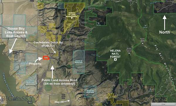 Use GPS: 2584 State Hwy 284 Townsend, MT; From Canyon Ferry Dam head 17mi SE on Hwy 284 property on right; From Townsend head NE on US-12 for 2.5mi, turn left onto Hwy 284 for 16mi property on left