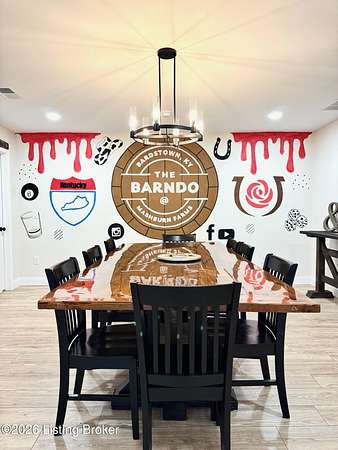 Welcome to a rare investment opportunity, an established, high-performing short-term rental that seamlessly blends luxury, entertainment, and Kentucky charm, with a proven track record of generating six-figure annual booking income across Airbnb and Vrbo, making it an ideal addition to any investor's portfolio or a dream retreat with income potential; this stunning 5-bedroom, 3.5-bath home offers approximately 3,900 square feet of thoughtfully designed living space, all beautifully curated with a unique bourbon-inspired theme that guests love and remember, driving repeat bookings and strong reviews, while the showstopping 1,500-square-foot game and entertainment space is perfect for hosting large groups and features a hot tub, pool table, and multiple TVs throughout, ensuring comfort and fun for every guest; perched atop a scenic hill, the home boasts breathtaking panoramic views stretching for miles in every direction with unforgettable sunrises and sunsets, and is situated on 6.91 private acres offering peace, seclusion, and a true escape, all while being just minutes from the charm, dining, and attractions of Bardstown; sold fully furnished and operational, this is a true turnkey investment ready for immediate income generation from day one, whether you're expanding your rental portfolio or entering the short-term rental market with a proven success.