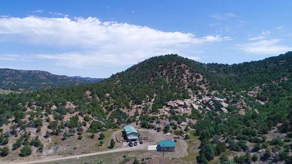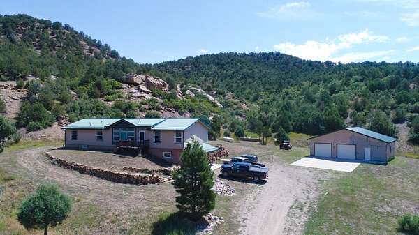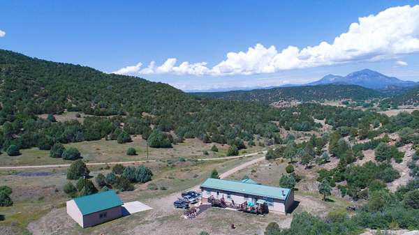 This charming country home was thoughtfully built with meticulous attention to detail. The fully taped and textured modular features a spacious floor plan with formal dining, living room, and a well-appointed kitchen offering ample cabinetry, walk-in pantry, and eat-in area that opens to a cozy family room with fireplace. The private primary suite includes a luxurious 5-piece bath. Two additional bedrooms and a full bath complete the main level. The finished lower level has 9' ceilings, a bonus room, 3/4 bath, and workshop. A detached 3-car garage has 10' ceilings. Enjoy breathtaking views of the Spanish Peaks from this elevated setting, nestled against a scenic canyon wall with unique terrain to explore. The property crosses the road and includes a seasonal creek that often reveals historic artifacts and is an attractant to all types of Wildlife. This perfect property is just 0.8 miles from pavement and 2.5 miles to Aguilar.