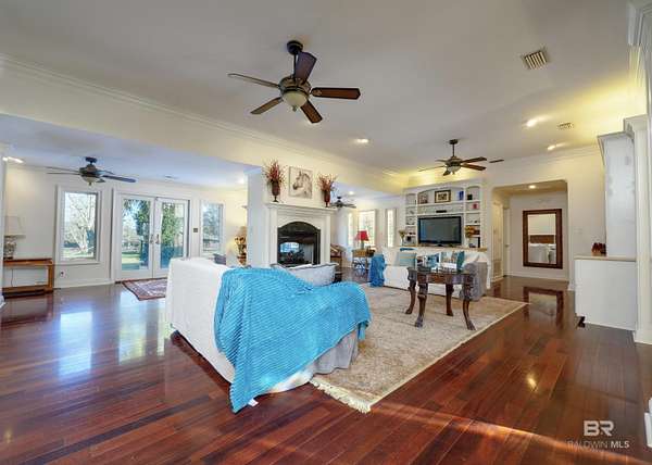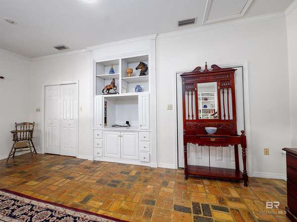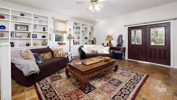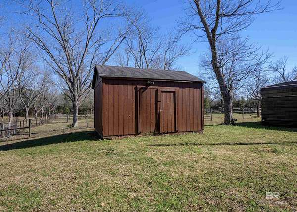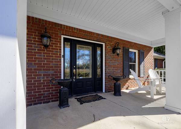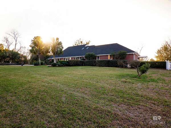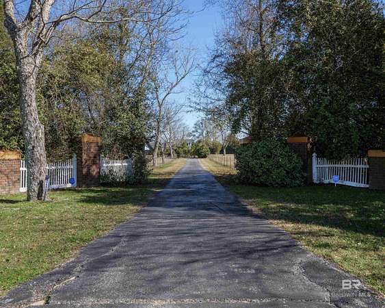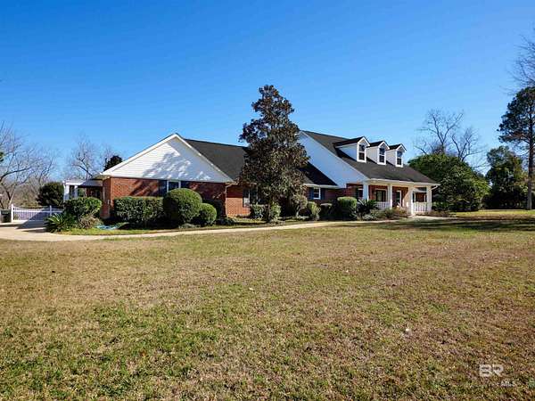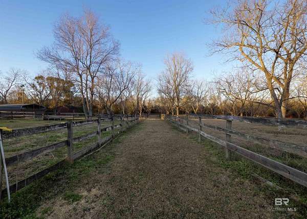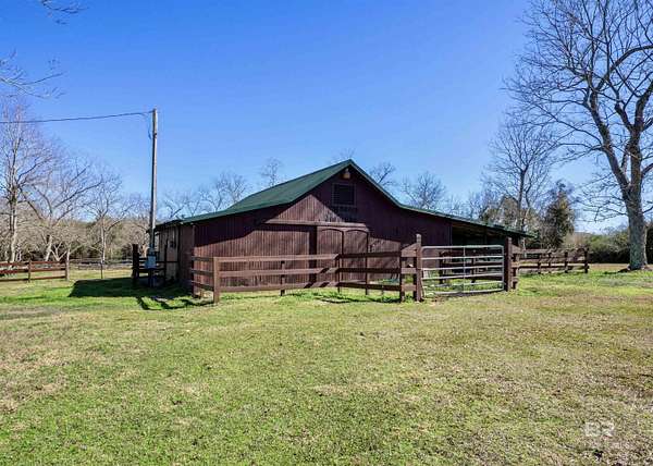 Picture yourself having coffee watching the sunrise on your back patio at this sprawling one-story charming estate that sits tucked away on 17.7 acres of serene, private land. It has an original horse barn and detached garage and is just 20 minutes from downtown Mobile. Built in 1992, this beautifully maintained open concept home is just over 3,900 sq ft. Ideal for entertaining the separate dining room opens to a sprawling living area with double sided gas fireplace perfectly positioned maximizing privacy and taking advantage of the peaceful views of pool, pastures and half acre lake back patio, inground gunite saltwater pool and rolling pastures. With the same views and just off the living room are the kitchen and breakfast areas with a 7 x 5 bar (with a wine and small fridge). There are two gas water heaters, one is tankless. The interior has been freshly repainted, and all the inside plumbing has been replaced. Both HVAC systems (inside and out) were replaced in Q4 2025. Roof replaced in 2019. Out side you'll find a 7-stall horse barn, 1 stall currently used for feed, with huge fans, running water, 2x6 plank construction and rubber mat flooring. The barn is an original structure and presents an excellent opportunity for renovation or restoration by the next owner. There are 3 pastures and 5 paddocks with cross tied fencing. More features include a chicken house, established southern trees, and a detached, finished 2 car garage with abundant attic storage. There is a large buffer area behind the property reserving long-term privacy. What a rare opportunity for country living with modern updates and convenience! Buyer to verify all information during due diligence.