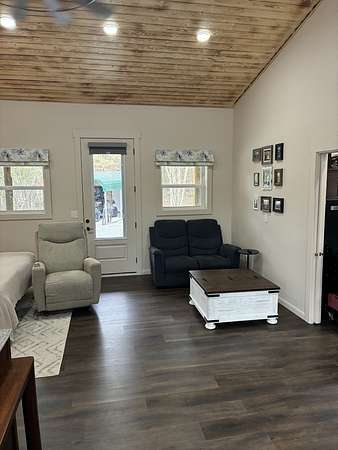 Rare and Unique!!!! Situated on 8.1 beautiful acres this property features a 1680 sqft main house and a breathtaking 850 sqft guest house. Inside the main house has an inviting open floor plan perfect for entertaining. Granite countertops and stainless-steel appliances. LVP flooring throughout, high ceilings and a high energy efficient HVAC unit. Step outside to a breathtaking view as well as you relax in the above ground pool. The guesthouse offers just as much beauty. Approximately 850 square feet with an open concept. 8 foot entry doors with granite countertops, custom cabinets, farmhouse and high ceilings. the bathroom features a stunning soak in tub with a massive shower head over top. A 1 car attached garage space is also heated and cooled for extra living space. This property truly has it all to make for the perfect peaceful forever home.