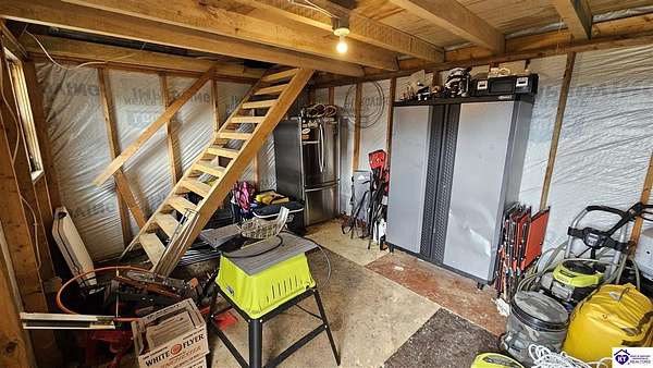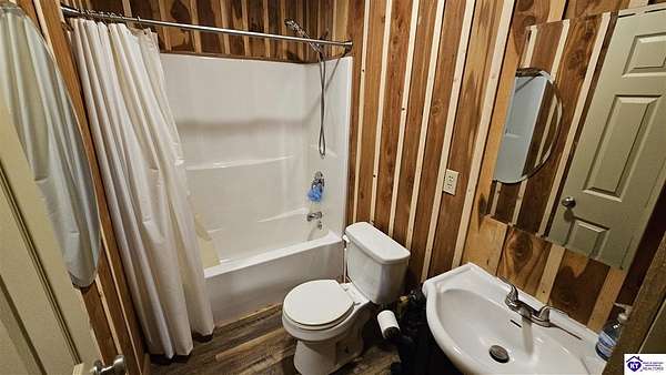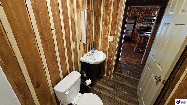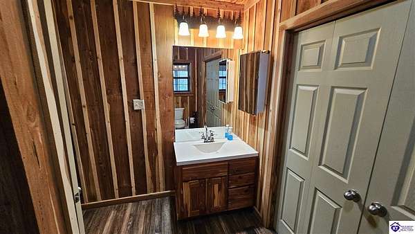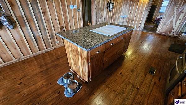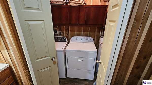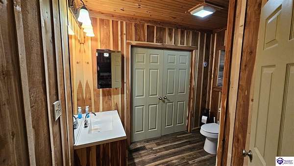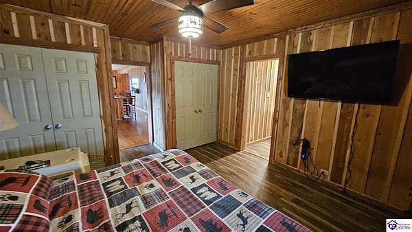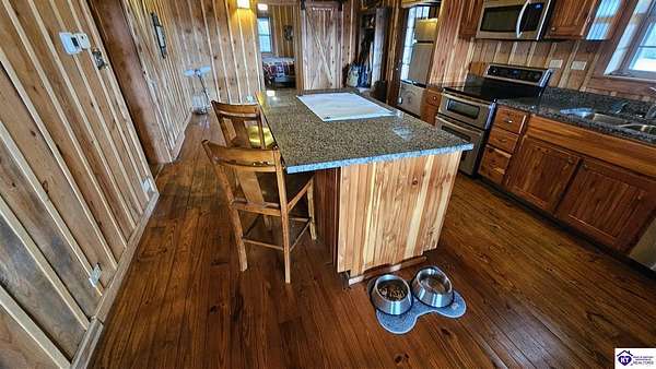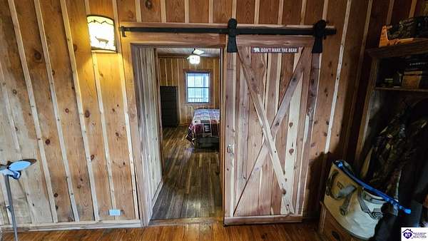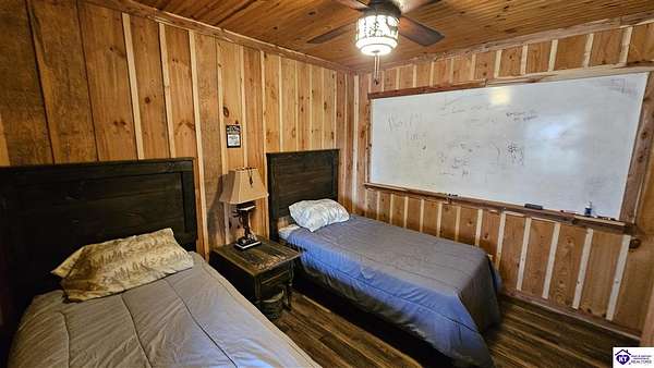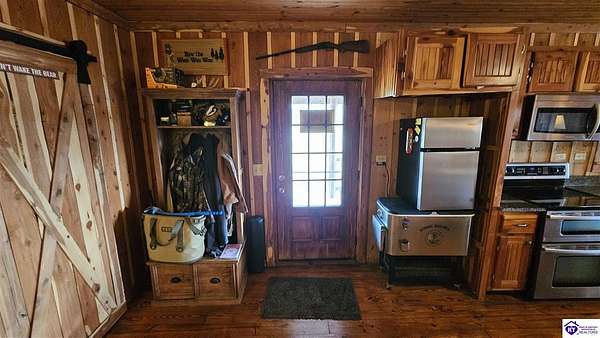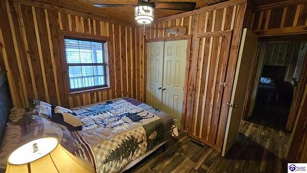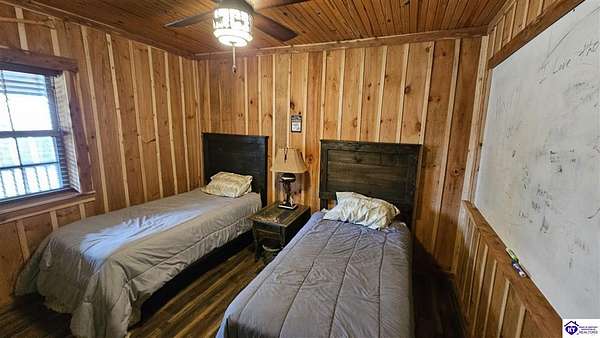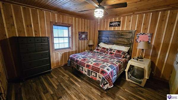 Welcome to 2586 Logsdon Cemetery Road. If you’re searching for your slice of quiet, peaceful country life look no further than this secluded 51.96 acre farm in Clarkson right by Nolin River Lake. Perched atop a ridge between the lake and the red line of Pearson Branch, this sprawling cabin and surrounding property is a haven for outdoor lovers and a hunter’s paradise for those inclined. Heading onto the property, pass the gate, you will immediately be struck by the beauty of the rolling hills and woods that await exploring. Walking up to the house, a fabulous complete wrap-around porch with swing beckons you. Heading inside brings you into an open living room, dining area, and kitchen. The beautiful hardwood floors and abundant natural light in this space continue throughout the home. A lovely wood burning stove is situated between the living room and dining area. The gorgeous kitchen offers ample cabinet space with breakfast bar, granite countertops, stainless steel appliances, and island with a 2nd breakfast bar. Separate sliding barn door entrances lead to the primary suite and the other two bedrooms and full bath. The primary suite offers a spacious bedroom with two large closets and a private bath with walk-in shower and the laundry closet. The other bedrooms are also generously sized and have large closets as well. Heading out back leads you into a huge yard providing plenty of space for kids or pets to play in before even getting out into the rest of the land. The enormous 33’ x 57’ carport and garage provides all the room you could ever need to hold all your vehicles, lawn equipment, ATVs, or boats via its’ five bays. The 12’ x 16’ storage shed has electric service and additional loft area. Don’t miss out on this unique opportunity and schedule a showing today!