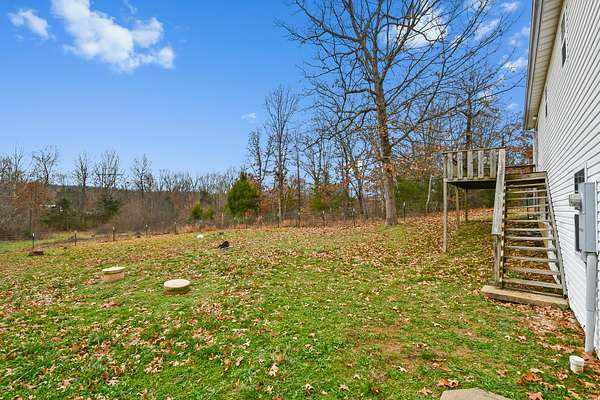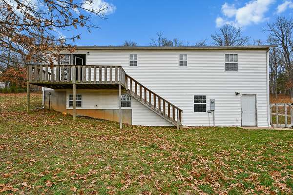 Home For Sale Laquey, MOBeautiful and spacious, this 4-bedroom, 3-bath home sits on 3 peaceful acres in a highly desirable neighborhood. Offering approximately 2,000 sq. ft. of living space, the property features a full finished basement and a partially finished 2-car attached garage with extra storage. The open-concept main level welcomes you with a large living room, a roomy kitchen, and a convenient pantry--perfect for everyday living and entertaining.The main floor includes two bedrooms and a full bath, along with a comfortable master bedroom featuring its own private master bath. The kitchen provides an abundance of cabinetry and French doors that open onto a deck overlooking the beautiful 3-acre setting, ideal for enjoying quiet mornings or evening relaxation.The finished basement adds even more functional space with an additional bedroom, a family room, a laundry area, and a full bath with a walk-in shower. Attractive laminate flooring extends through much of the lower level, giving it a warm and updated feel.Land For Sale Pulaski County, MOThe home is serviced by city water and a septic system that drains to a lagoon. A covered front porch offers another inviting outdoor space, perfect for relaxing and enjoying the neighborhood. A new roof installed in 2025 and a new hot water heater in 2024 provides peace of mind for the next owner.This property offers space, comfort, and a great location--all being sold AS-IS, giving buyers a wonderful opportunity to add their own finishing touches.