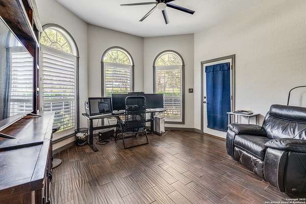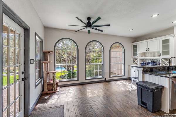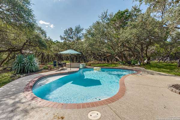 Est $6,164/moGorgeous 3,000 sq ft single-story home in a quiet, gated community. Set on 3 wooded acres with about 1 acre fully fenced, backing to a scenic ravine for added privacy. The backyard is a private oasis with a heated pool and spa, surrounded by towering trees. Inside you'll find 4 bedrooms plus a study (optional 5th), no carpet-just wood-look tile throughout. Spacious kitchen with granite counters, built-in ovens, wet bar, and a large dining area. Flexible layout with a separate dining or bonus space. Cozy wood-burning fireplace completes the living area. A rare find-must see in person!