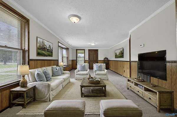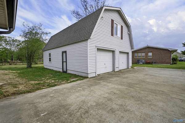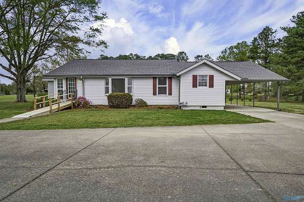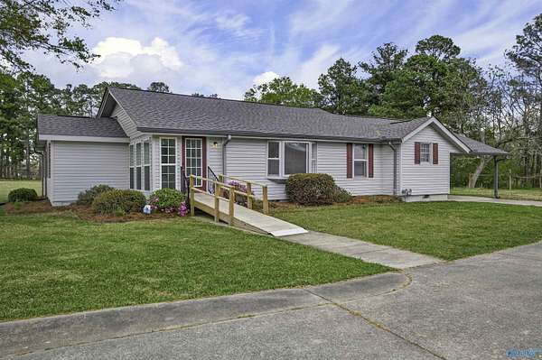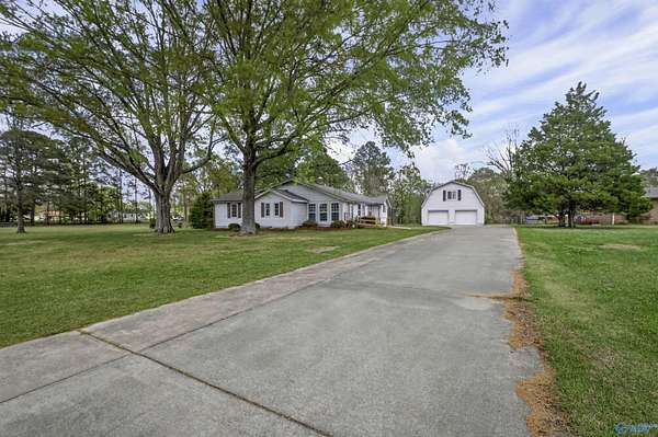 Peaceful country living on 5 beautiful acres! This well kept home offers 3 oversized bedrooms and 2 bathrooms, Sunroom, living room and family room giving you plenty of space to spread out. Clean and well-maintained mixes classic charm and thoughtful updates. Large kitchen with new LVP flooring and tile backsplash. Freshly painted throughout, new sheetrock and vinyl windows Outside is perfect for animals, gardening or just enjoying the view. Property includes a carport and a detached 2 story garage with power, ideal workshop, storage or even future living space above. If you have been looking for simple peaceful living in the heart of Hokes Bluff this property is for you