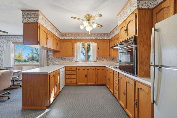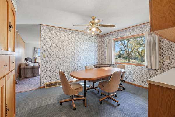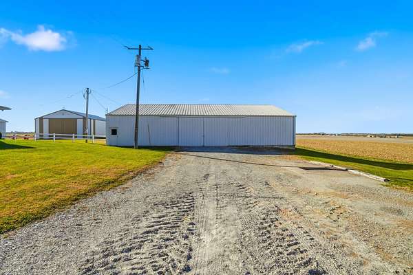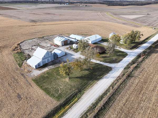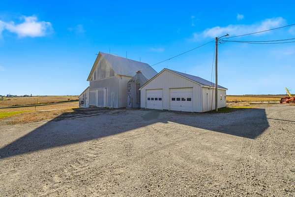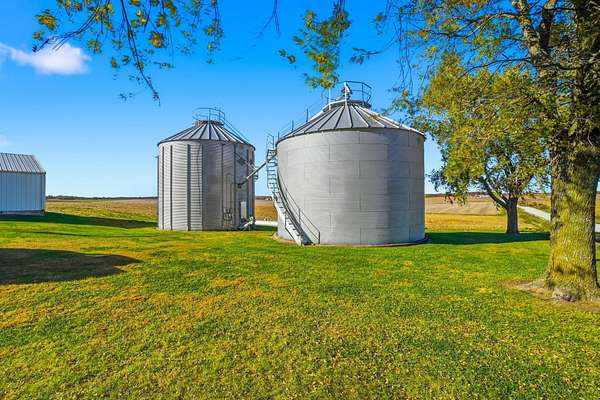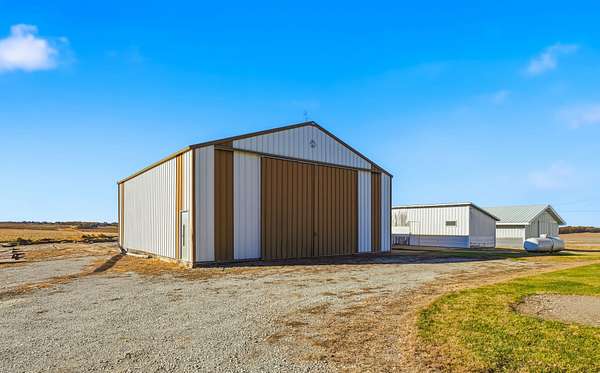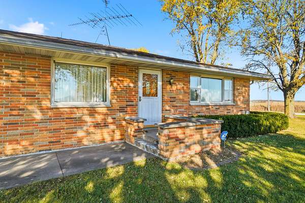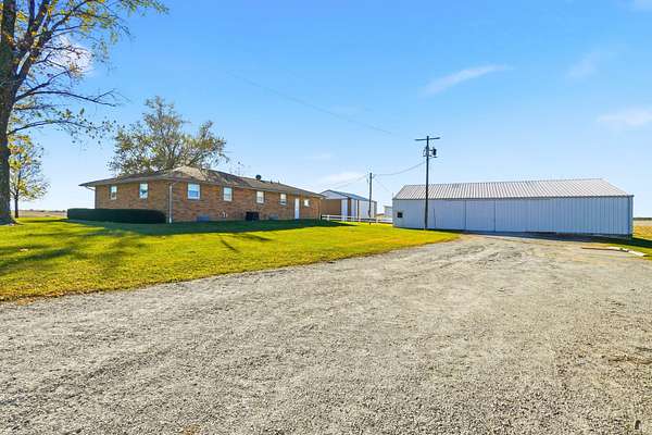 Discover peaceful country living with this beautiful brick ranch home situated on 3.75 acres of scenic land. This well-maintained home features a full finished basement, two bedrooms, and two bathrooms, offering plenty of comfortable living space. The property includes a one-car attached garage as well as a detached two-car garage, providing ample room for vehicles, equipment, or storage. The home is equipped with newer double-pane replacement windows, a radon mitigation system, and both rural water and a good well, ensuring convenience and reliability. The HVAC system was new in 2018, adding comfort and efficiency year-round. Inside, you'll find a beautiful kitchen complete with all appliances, including a washer and dryer, along with carpet and vinyl flooring throughout. Enjoy the stunning views from this quiet rural setting and take advantage of the impressive outbuildings, which include two Morton machine sheds, a barn, two livestock buildings, and two grain bins with a total capacity of 22,000 bushels. This property combines functionality with country charm, making it ideal for a small-scale farming operation, hobby farm, or anyone looking for a peaceful country lifestyle.