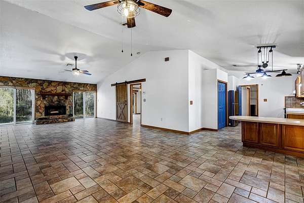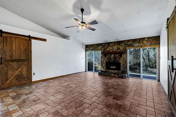 One or more photo(s) has been virtually staged. Welcome to peaceful country living at 2588 County Road 245C in Oxford, FL! Situated on a beautiful gated 9-acre parcel in Sumter County, this inviting 3-bedroom, 2-bath home offers the perfect blend of comfort, space, and privacy. Step inside to a spacious great room featuring a stunning wood-burning stone fireplace that creates a warm and welcoming focal point. French doors on both sides of the fireplace bring in natural light and add character to the living space. The home is completely tiled throughout, offering durability and easy maintenance. Enjoy Florida living year-round on the large 14x23 screened porch, the perfect place to relax, entertain, or simply take in the peaceful views of your expansive 9-acre property. With plenty of room for outdoor activities, gardening, or future improvements, this property offers endless possibilities. The roof was replaced in 2021 and the driveway is newly paved from the road to the front of the home. If you've been looking for space, privacy, and a comfortable home in a beautiful rural setting, this property is ready to welcome you. Schedule your showing today and come experience the charm and potential of this unique Oxford property!