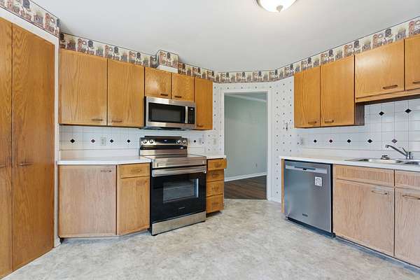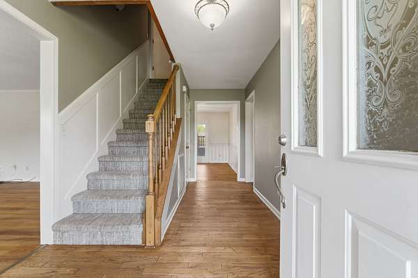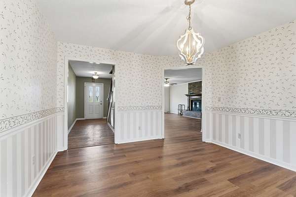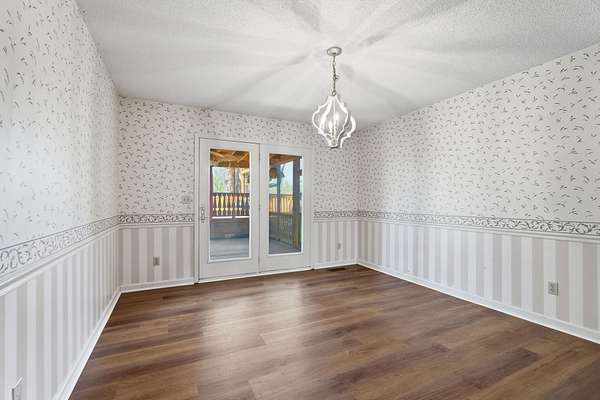 Inside, the main level showcases beautifully appointed engineered LVP flooring, offering both elegance and durability throughout. The heart of the home is a spacious chef’s kitchen, thoughtfully designed with sleek stainless-steel appliances and ample room for gathering and entertaining. Just beyond, a screened-in deck invites you to unwind while overlooking the sparkling pool and expansive pool deck, and massive backyard—an ideal setting for summer evenings and effortless indoor-outdoor living.