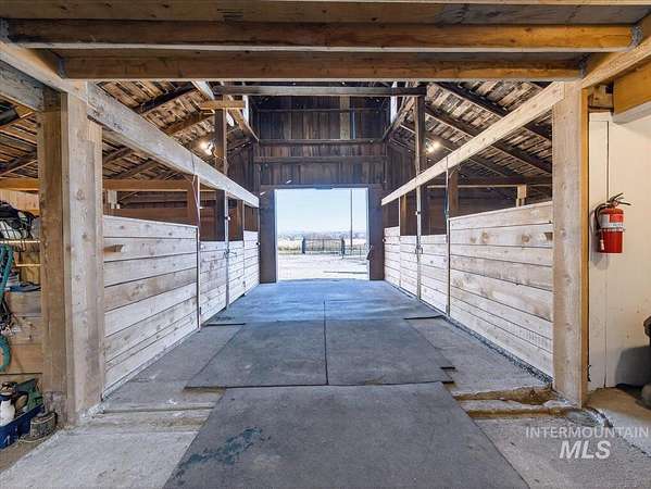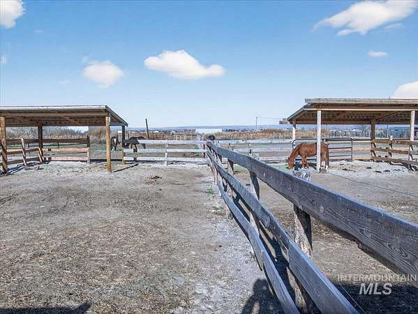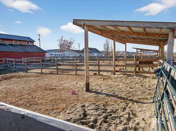 This beautifully planned equestrian property offers everything needed for a high-functioning, professional horse operation. Thoughtfully designed for efficiency, safety & comfort, it provides premium amenities for both horses & handlers-making it ideal for private owners, trainers, boarding programs, or equine businesses. Barn includes: 40' x 40' main barn, 15' x 25' drive-through feed room, workshop, loft storage, 4 ventilated 11' x 13' box stalls, tack room, grain/blanket storage, 3 cross-tie bays & wash rack. Paddocks & turnout: Four 32' x 64' dry lots with 12' x 16' shelters, convertible to eight 16' x 64' runs with 12' x 8' shelters. Dry lots open to two 1/2-acre pastures for great rotation. Training amenities: 40' enclosed round pen, 90' x 180' arena w/quality sand footing & pull-through trailer parking. Fully irrigated & RV hookups w/own power meter. The home features a bright, open kitchen, spacious living area & a designated home office. Modern finishes & a clean, functional layout make this the perfect balance of the property's impressive outdoor amenities. This property blends function, thoughtful planning, and premium constructions to create a truly standout equestrian setup. Whether you're growing your program or seeking a ready-to-use private facility this is a rare turnkey opportunity that checks every box. This property is eligible to be split into 5-acre parcels.