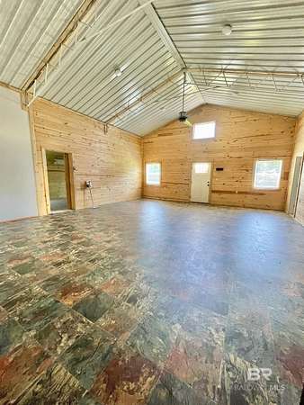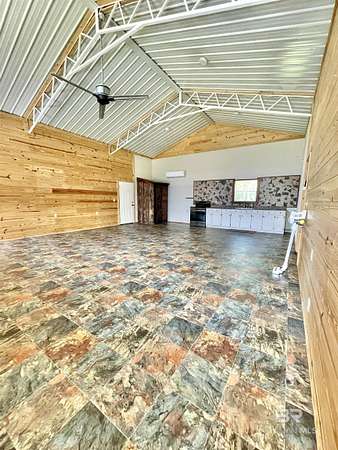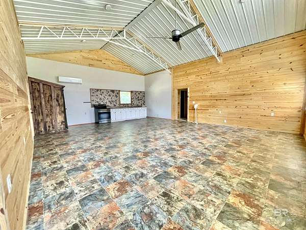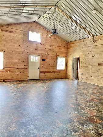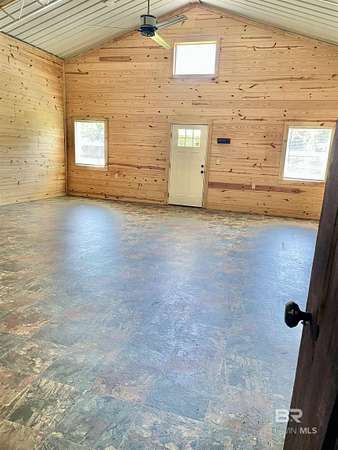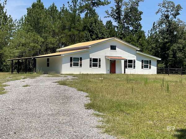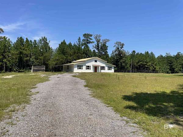 Motivated Seller! Experience the ultimate retreat in this charming barndominium built in 2021 on 3.75 acres, perfect for a weekend getaway or full-time residence. Home features 2 bedrooms and 1 bath, open concept kitchen, dining and living room. All lots have access to the Little Escambia Creek through a 60-foot easement at the back of the property. Built to last, this home rests under 3/4" plywood, rolled rubber, metal roof and enclosed with 6" foam insulation in the 2x6 walls and ceiling. Heating and cooling are provided by 2 mini-splits to keep you in comfort year round. The rear patio is perfect for relaxing outside and enjoying the views. There is a small 11x12 attached garage for parking a golf cart or riding mower and a double carport. There is also a 14x14 shed that is treated wood and offers additional storage. Only a few miles from Flomaton and Brewton, you have access to both in minutes and only approximately one hour to the white sandy beaches of the gulf. If this sounds like the place to call home, give me a call today and let's make it happen! Buyer to verify all information during due diligence.