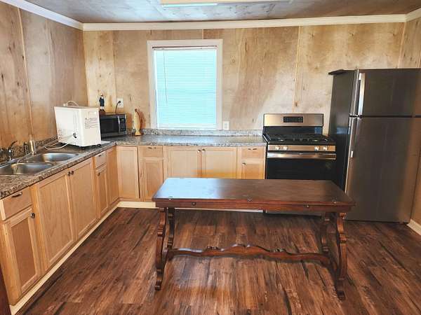 - Dryer, Gas Cooktop, Gas Stove Con, Gas Water Heater, Microwave, Range/Oven, Refrigerator, Stainless Steel Appliance(s), Washer