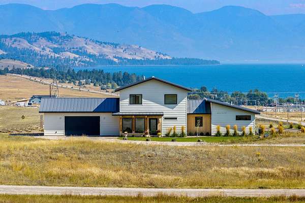 Beautiful brand new 3BD/3BA custom home on 4.6 acres, offering Flathead Lake & Mission Mountain views from nearly every room! Flathead Lake - a premier destination for fishing, watersports, and boating - is steps away. A beautiful slate rock entry leads into a spacious, thoughtfully designed floorplan. The kitchen boasts high-end appliances, quartz countertops, a large island, & under cabinet lighting. The living room features big windows w/ captivating lake & mountain views. The primary suite includes a luxurious ensuite bath featuring a dual vanity w/ under cabinet lighting & an open-concept tiled tub & shower. Upstairs, you'll find 2 guest bedrooms, a recreation room, & a balcony deck w/ more views. The lot is perfectly laid out to maximize unobstructed scenery. A garden area & hydroseeded lawn await your personal touch. 400-amp service is ready to be connected to an outbuilding. Year-round recreation awaits!