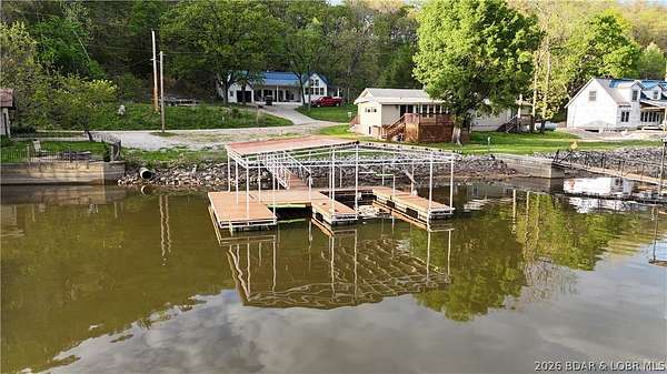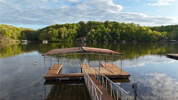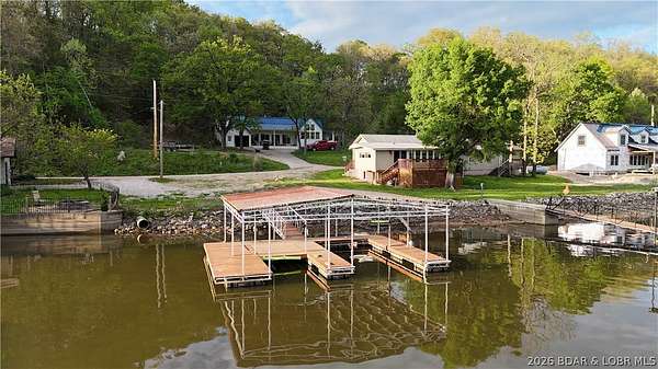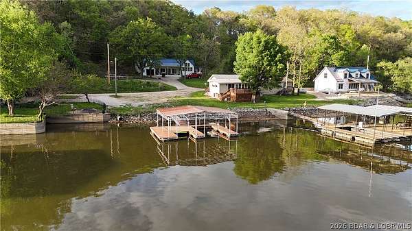 Welcome to your lakefront retreat in coveted Indian Creek Cove at the Lake of the Ozarks! Nestled on +/- 3.5 acres, this 5 bedroom, 5 bath home offers the perfect blend of space, comfort and incredible lake views. The main level features an expansive family room with vaulted ceilings and floor-to-ceiling windows that flood the space with natural light and showcase the stunning view. The open dining area and kitchen create an ideal layout for gathering with family and friends. You'll also find two guest bedrooms, a full guest bath, a half bath, and a spacious primary suite with a private full bath. Laundry is conveniently located just off the kitchen. Upstairs, oversized bedrooms on each end of the home provide ample sleeping space for guests, each complete with its own private bathroom. Step outside to enjoy easy lake access from your private dock, perfectly positioned in a quiet cove setting. If relaxing at the lake is on your must-have list, this is the one. Start making memories at the Lake of the Ozarks today!