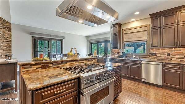 This luxurious ranch home sits on 64 acres with a jaw dropping in-ground pool, multiple garages, and a second home perfect to make into a rental/guest house! Tucked away in complete seclusion on 64 acres, this extraordinary property offers unmatched privacy & luxury living. At the heart of the main residence is a state-of-the-art chef's kitchen featuring Viking appliances, hand-selected finishes & custom imported granite. The open living areas flow seamlessly to the screened porch & outdoors, where you will see stunning views of the mountains & your own private pool - Which features a 10 person hot tub, waterfall, and is all surrounded by beautiful natural stone harvested directly from the property. You get to enjoy all of this while taking in the view of the tranquil landscaping & sweeping views of the unspoiled land! Also on the back patio is a newly installed custom outdoor kitchen of your dreams! If that wasn't enough, you will find a full bathroom in the pool house! You will love the oversized bedrooms and modern tiled bathrooms. The home has the ease of one floor living while featuring ample living space on the lower level for entertaining.The finished lower level of the main home offers premium entertainment with a custom bar, home theater, and spacious lounge area perfect for hosting or relaxing in style. In the center of this great space is a double sided stone faced fireplace that is sure to impress.You will appreciate the two car attached garage for storage and vehicle parking, along with a finished detached heated garage!The second residence, complete with it's own private driveway and large detached pole barn, offers ultimate versatility. This adorable chalet w/ amazing views would be a great investment opportunity or a great guest home for family/friends visiting! The garage also has electric and water!With no neighbors in sight & 64 acres of woodlands, meadows, and private trails, this is a rare opportunity to own a true legacy property
