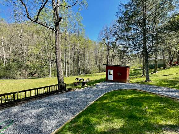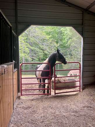 Double lot: 259 and 265 Black Oak Cove Rd. 17.50 acres with newly built 3 Stall Barn, Tack Room with running water on concrete foundation (flood safe) Large Bass Pond and Creek providing year round natural water source including ample exterior heated water sources. With Full size concrete trailer pad with gate access directly from pasture to trailer. Vinyl, electric fenced (new in 2021) pastures set up by gated sections for easy open rotation. Including additional rain/shine, one horse barn with tack room/feed barn with heated water and pasture access.