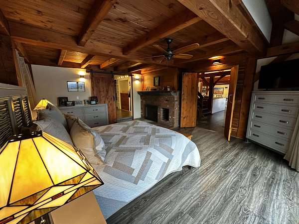 Stunning & modern unique Post & Beam home has it all with incredible CT River views an easy commute to MA, VT or Keene. The property welcomes you with well-lit custom retaining walls, expansive perennial gardens, two-car garage, and barn on just under 2 acres. Enjoy outdoor life under the covered patio, relax on one of the many private decks or fire pits. Dual RV hook up with water disposal with separate parking entrance & Pad. Artistic & cathedral ceilings and incredible Mountain views, update & modern Kitchen featuring slow close cabinetry, Moroccan inspired cement tile backsplash, and quartz countertops. Just steps from the Kitchen you'll find the sunken Living room that leads you to the quaint Sun room or access to the back deck. The Primary Master suite is conveniently located on the first flr with a wood fireplace, sliding doors onto your private deck, and the private Bathroom has a large walk-in tiled shower, heated flrs & beautiful double-vanity topped with marble. The finished walk-out lower level offers a large exercise area, Laundry rm and extensive storage. The lower level serves as an addt'l lvng space. In-law apt or Airbnb. There is a separate Kitchen with beautiful finishes, SS appliances, and quartz counter-tops, Living/Dining area, generous 3rd room can serve as a Bedroom & suite. A 25 mile long trail system touches the rear of the lot. Act Now!